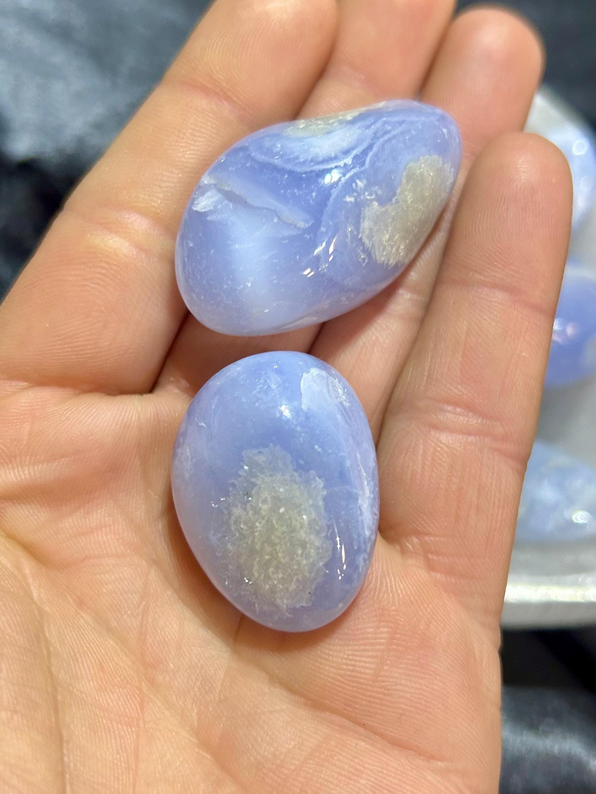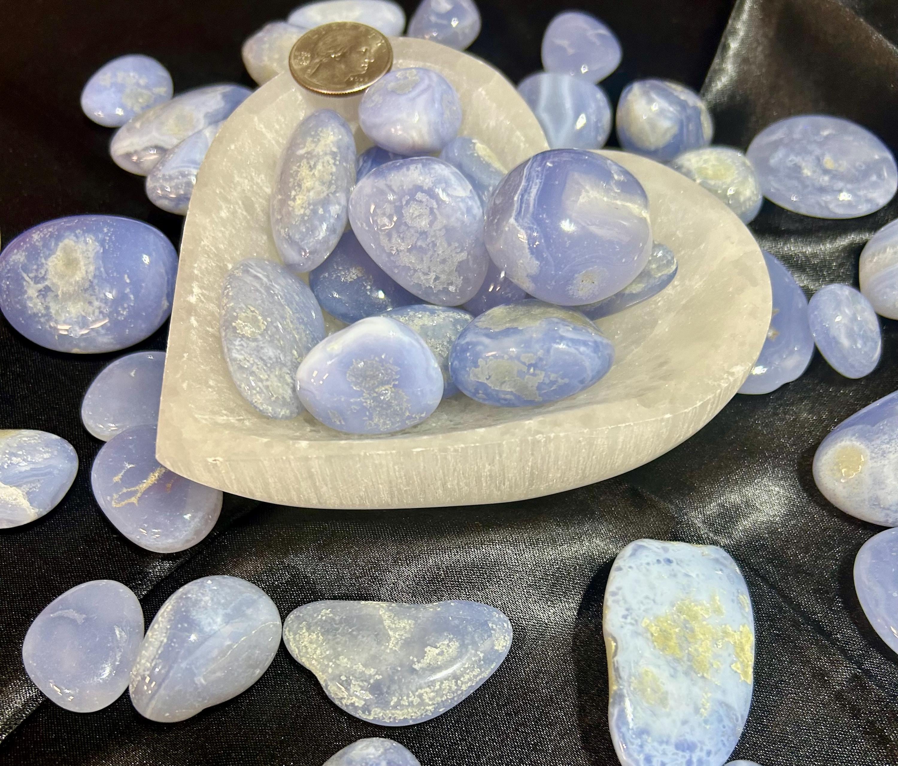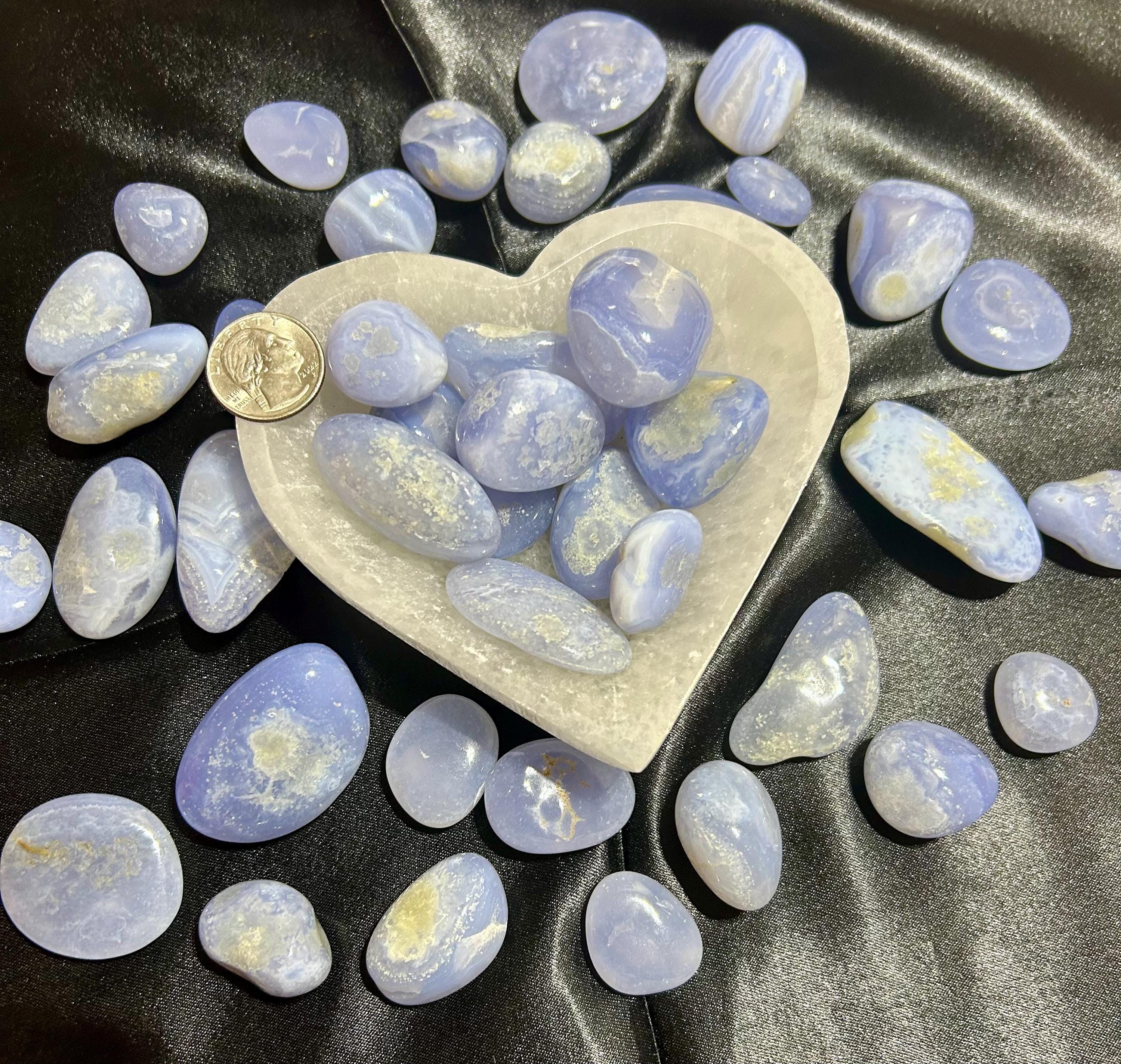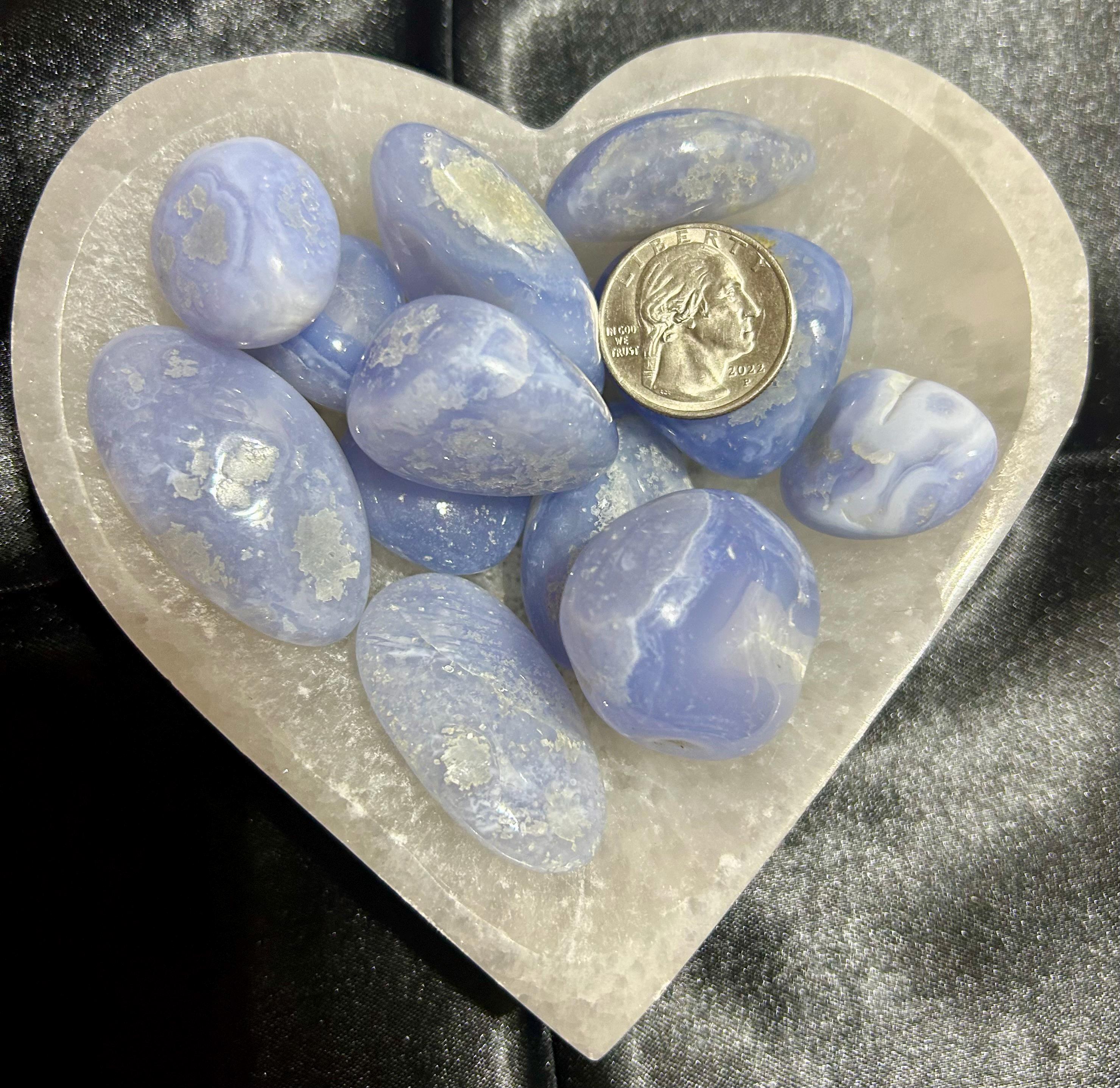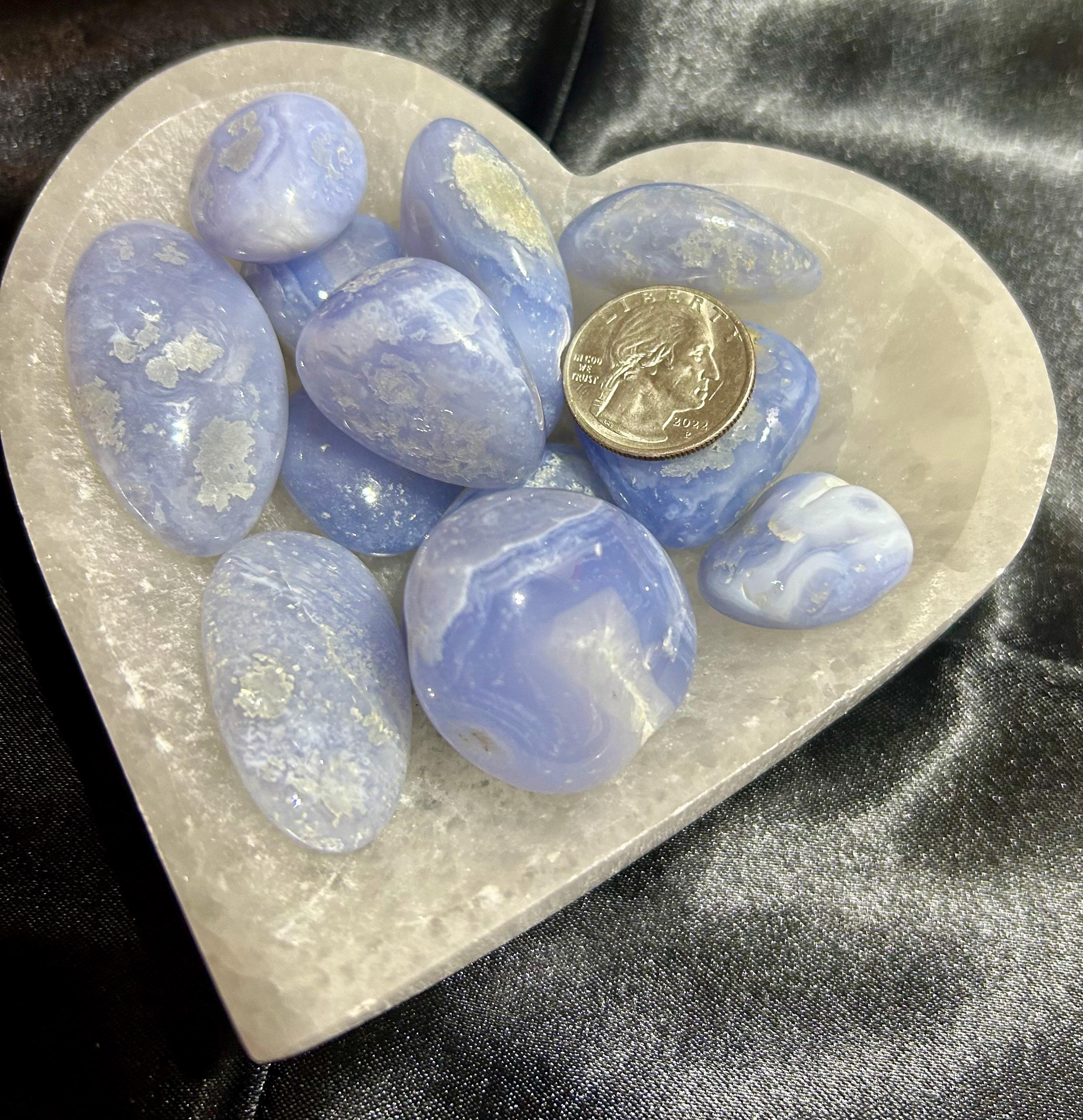 Gorgeous polished Blue Lace Agate. They are shown with a US Quarter for comparison. They have beautiful blue color. You will receive a crystal similar to the stones shown.