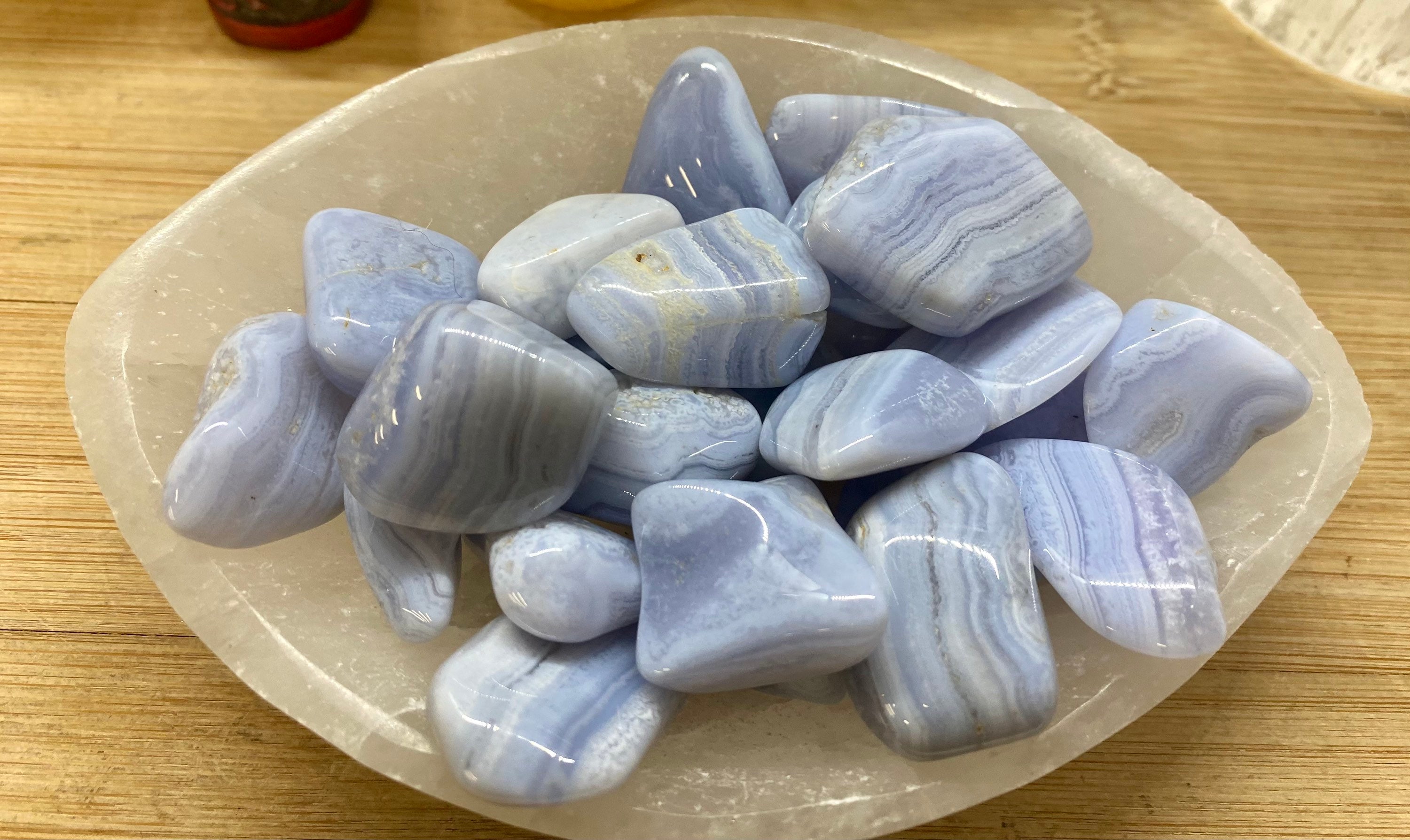 Blue Lace Agate is known as crystal of communication. It is says to help those who have difficulty being heard by others, or who need confidence and articulation to share their truths. It can help to provide clarity of thought and unwavering intent in regards to what matters most to you. It is the stone of the Diplomat. It aides communication in situations were angry words should be avoided, but clear communication is necessary. It is a variety of banded Chalcedony, a mineral of the Quartz family.
