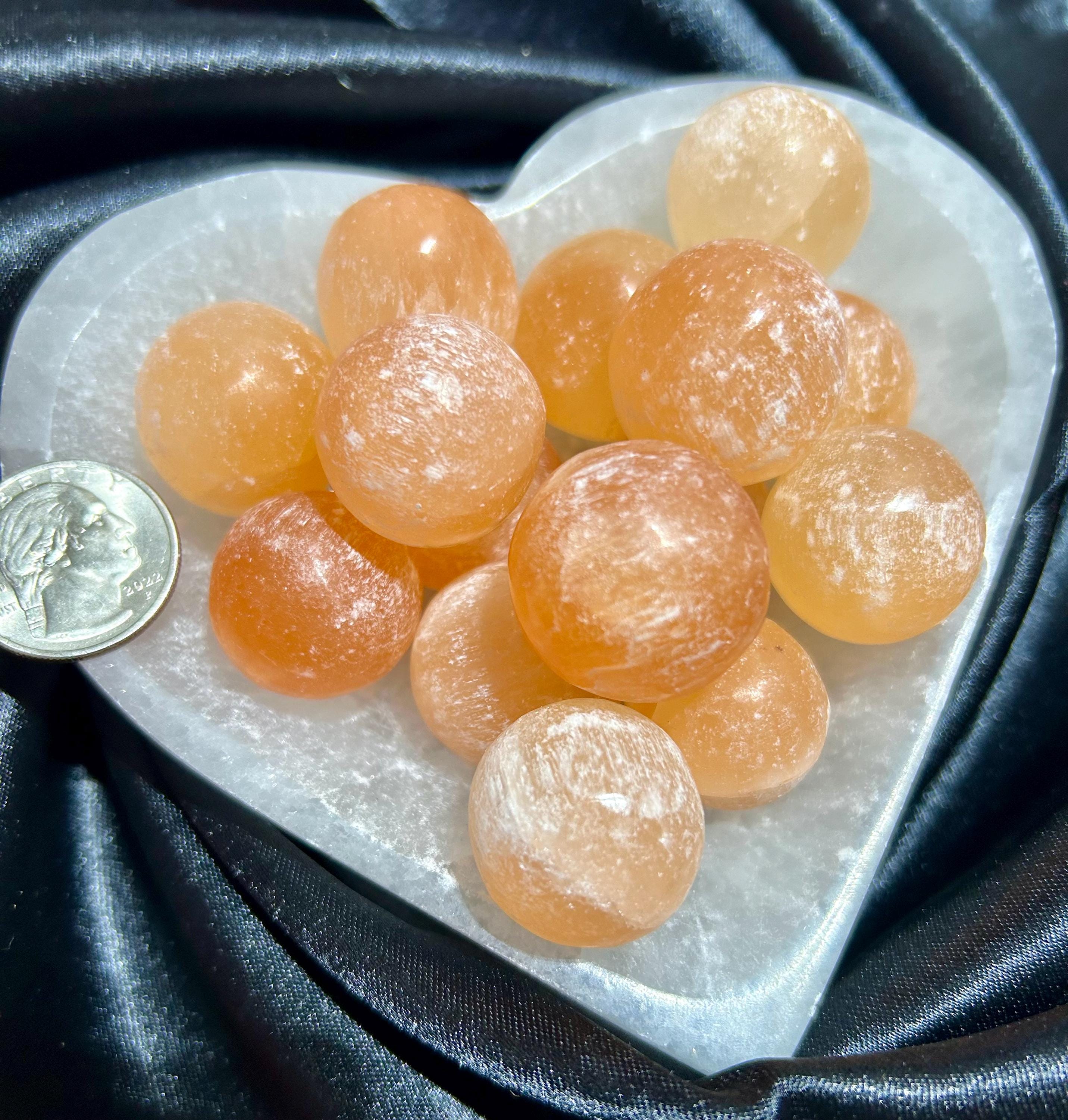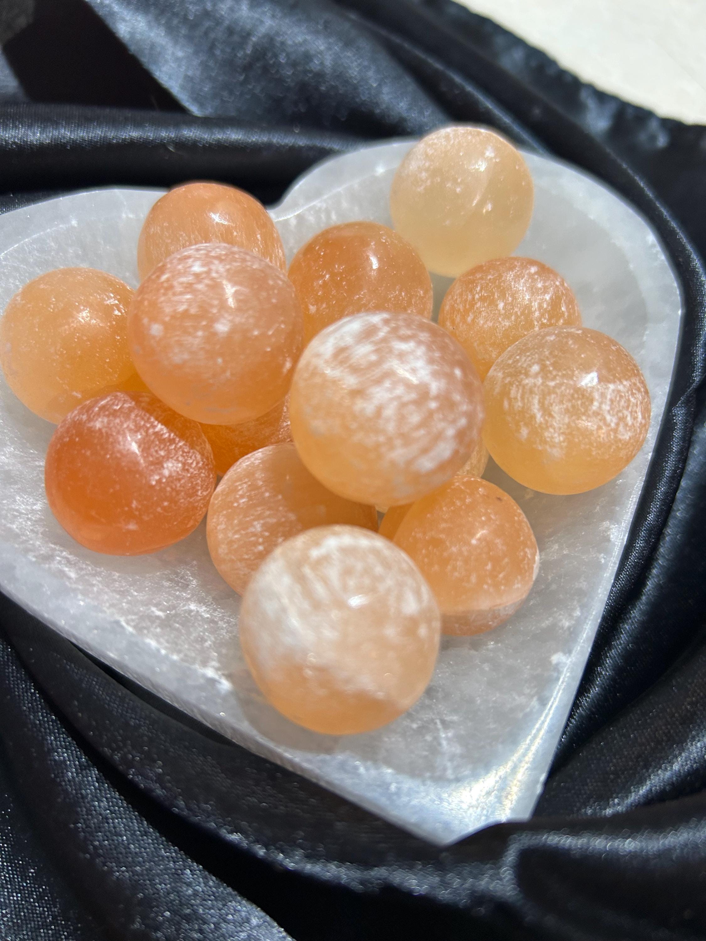 This listing is for a high quality orange Selenite Sphere/Orb similar to the one shown above. These spheres are 1 inches.