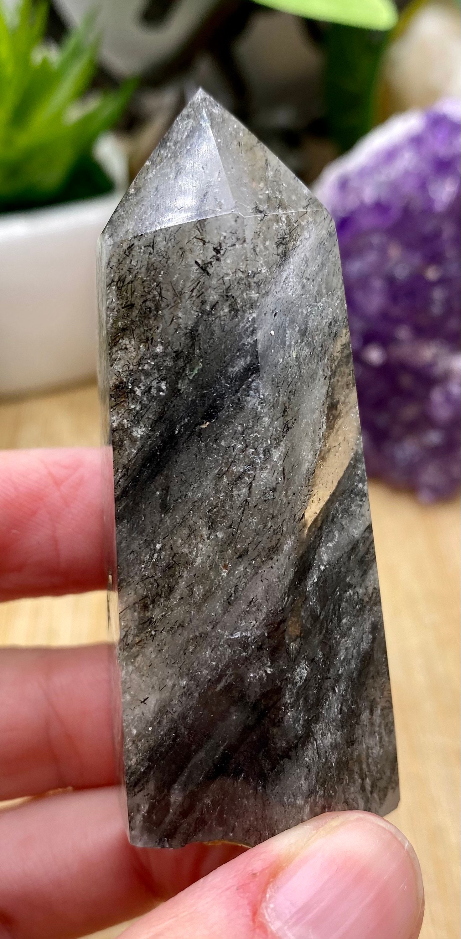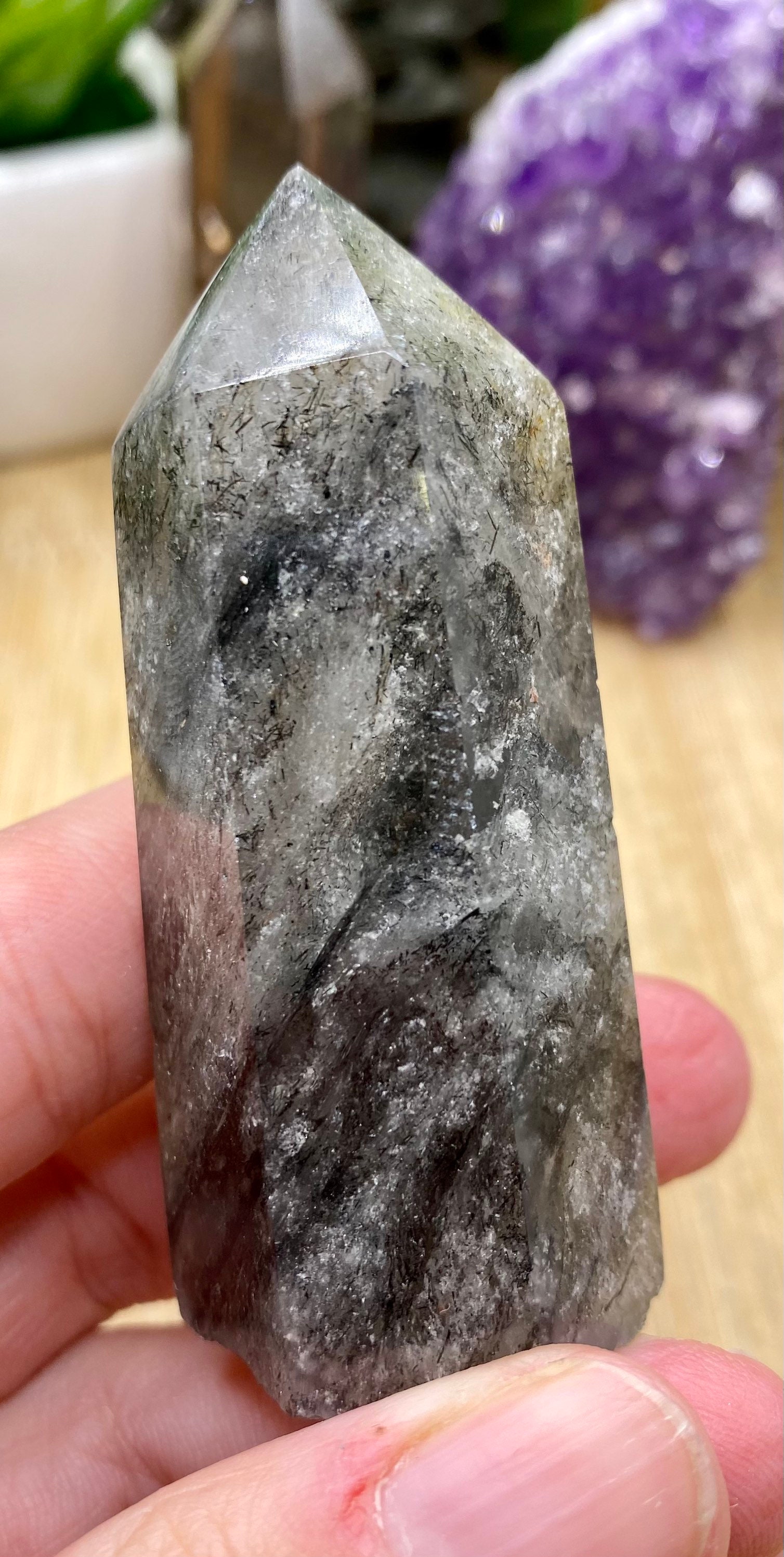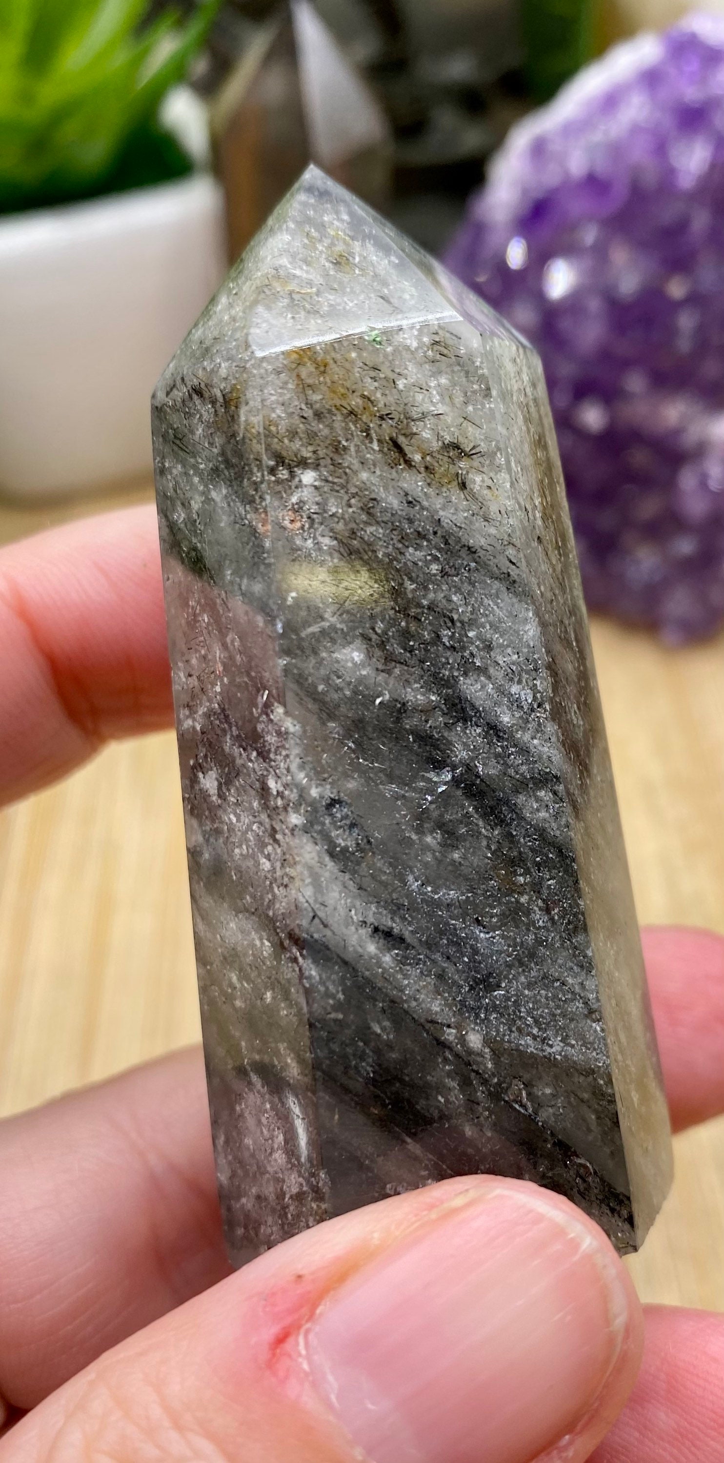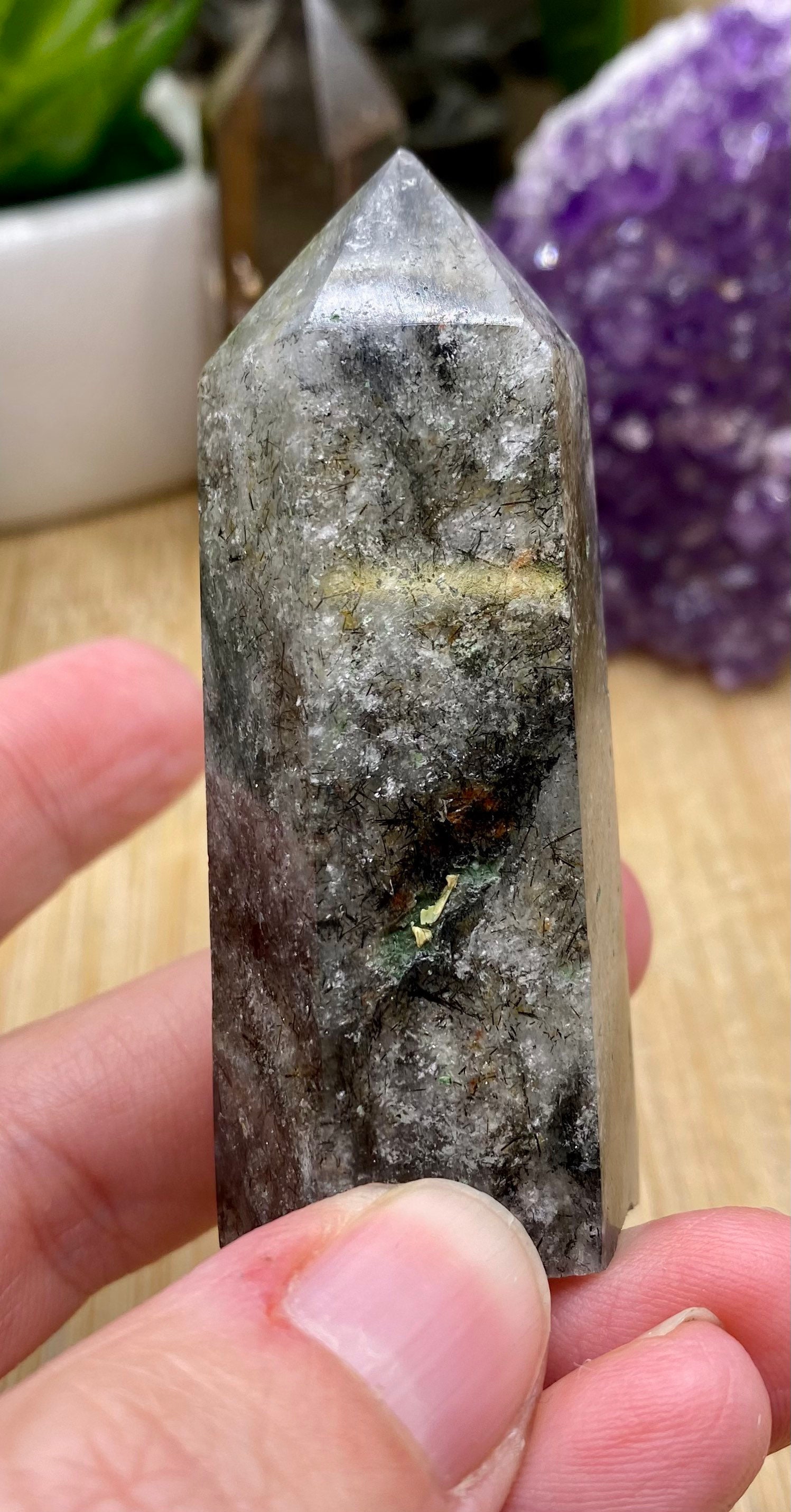 The layers seen within the quartz are formed when weathering from the wind and water intersects with quartz formations. It is said that Lodolite helps to bring money and good luck and never ending abundance to your life.