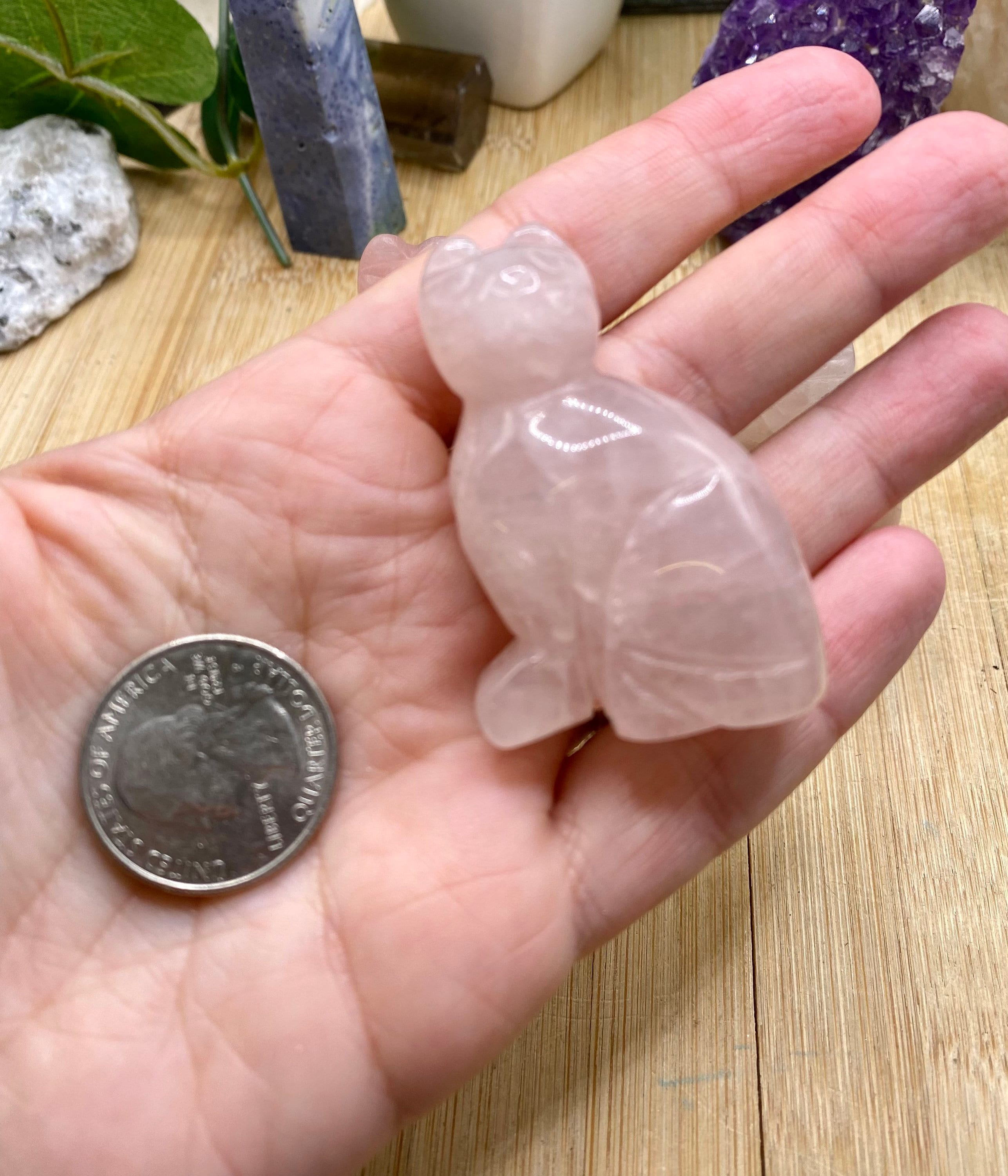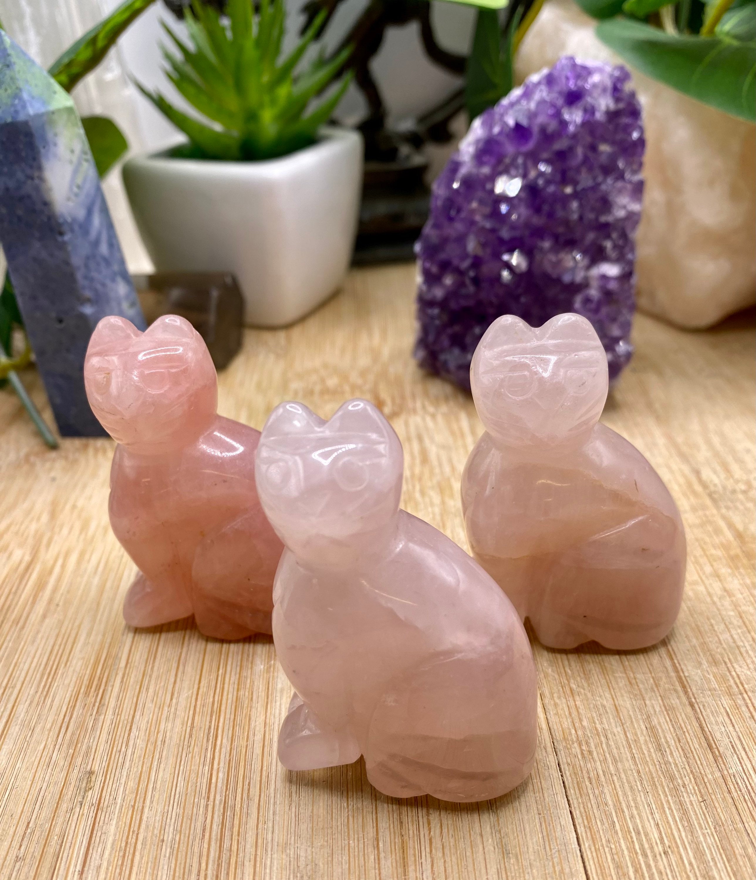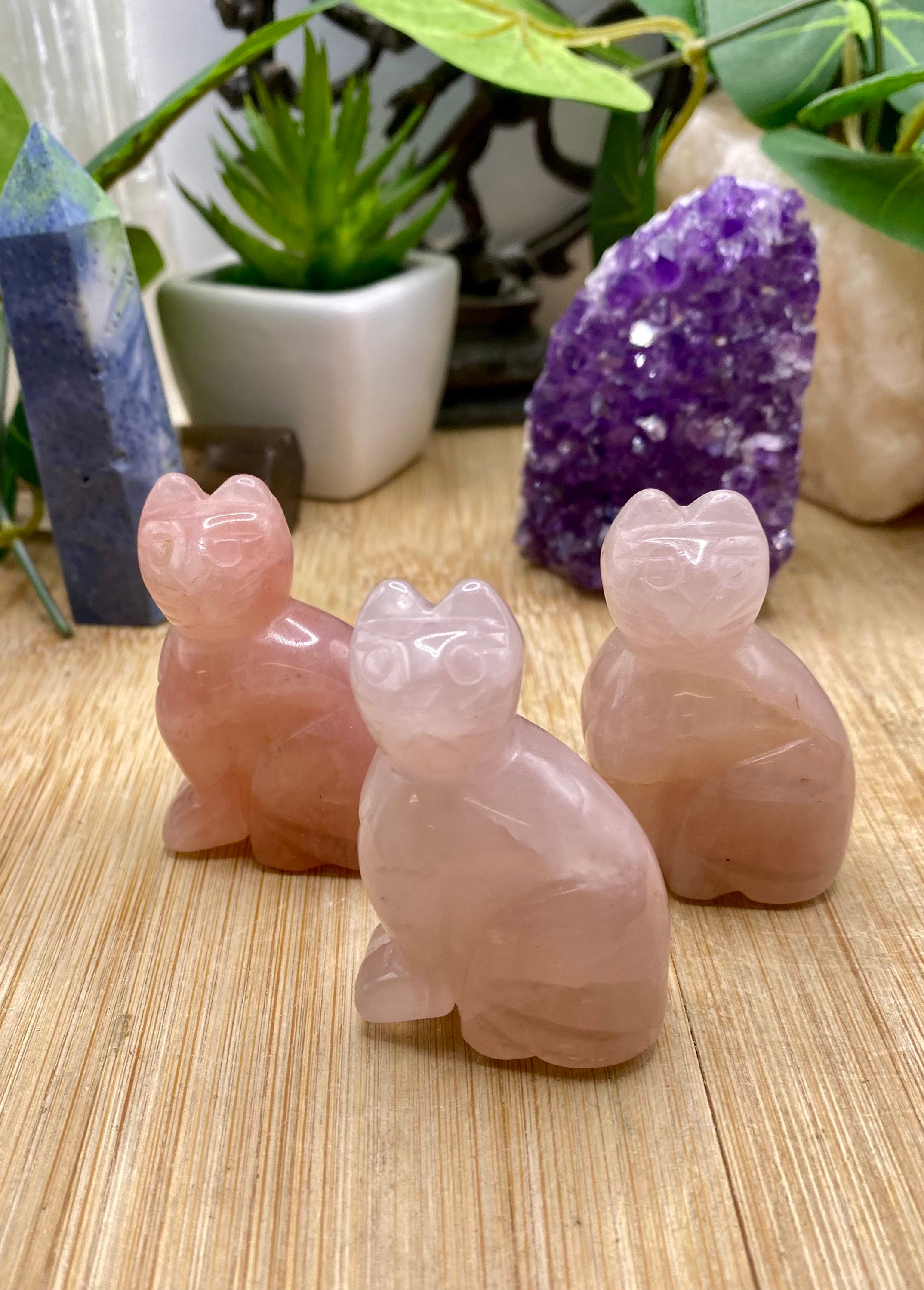 These Rose Quartz cats are approximately 2 inches tall. They are so cute. You will receive a cat similar to the ones shown.