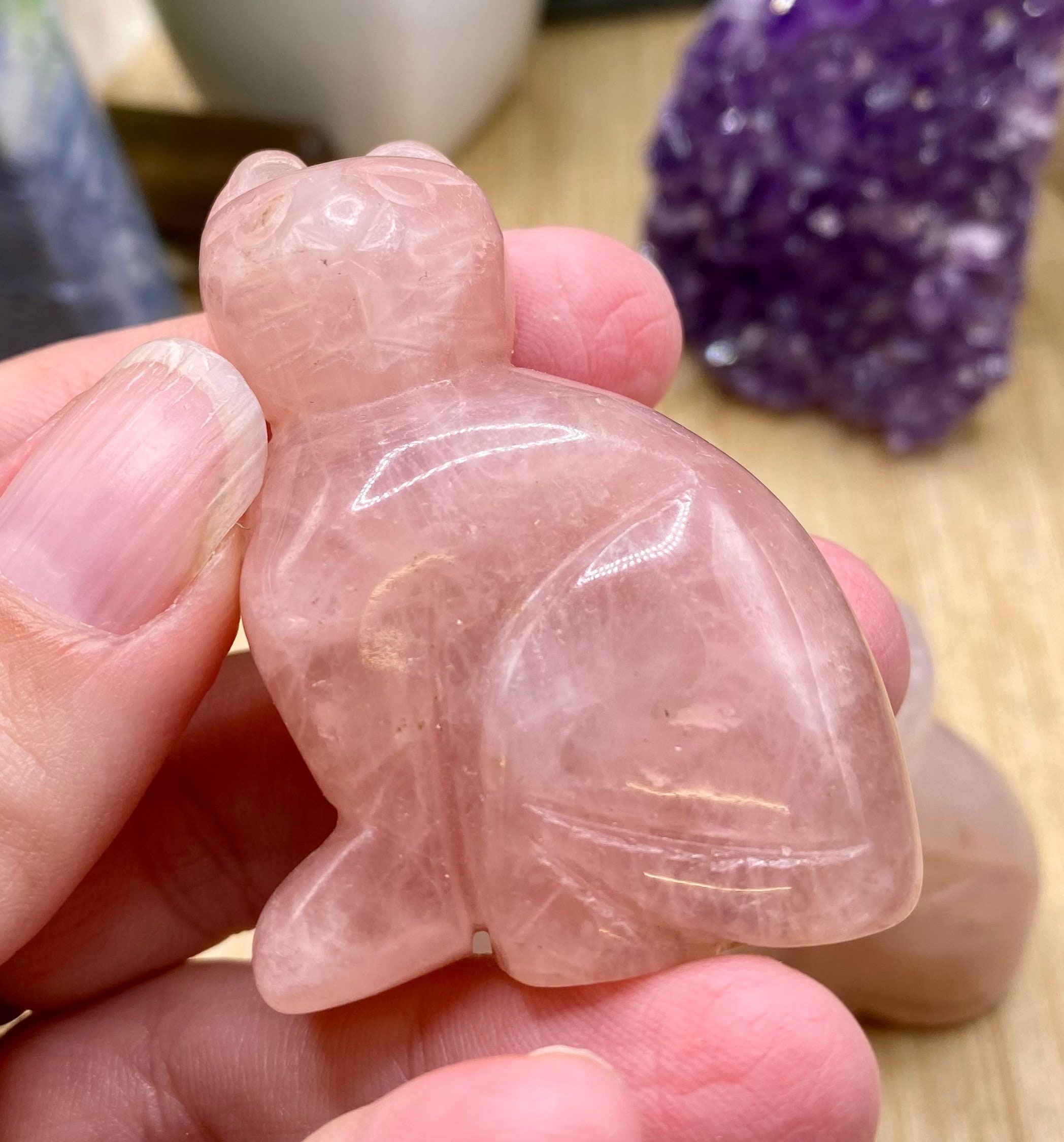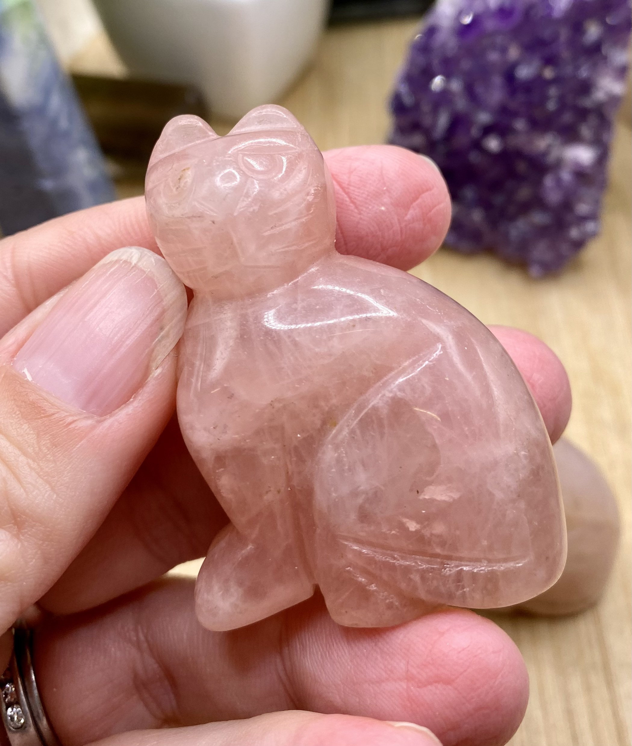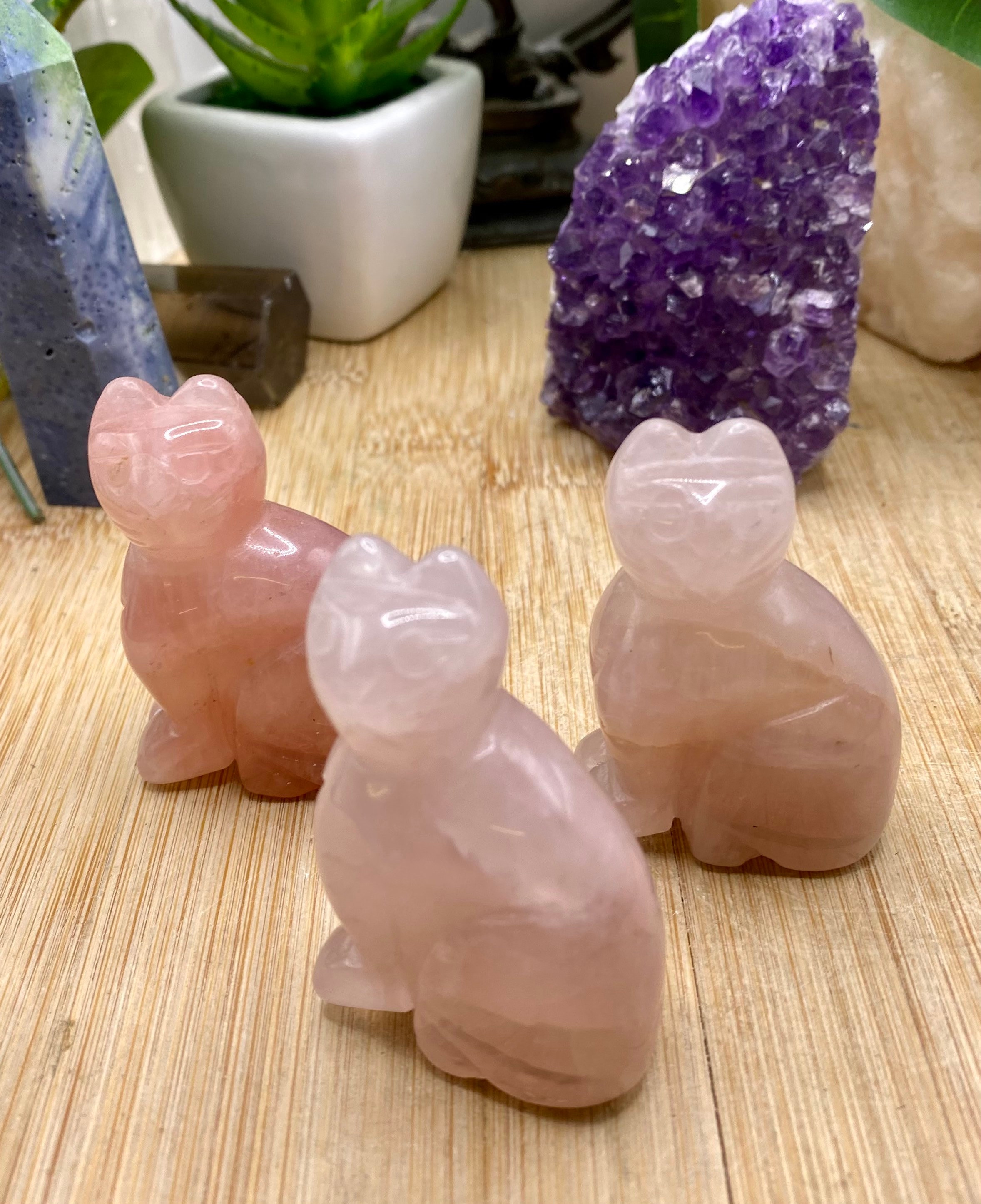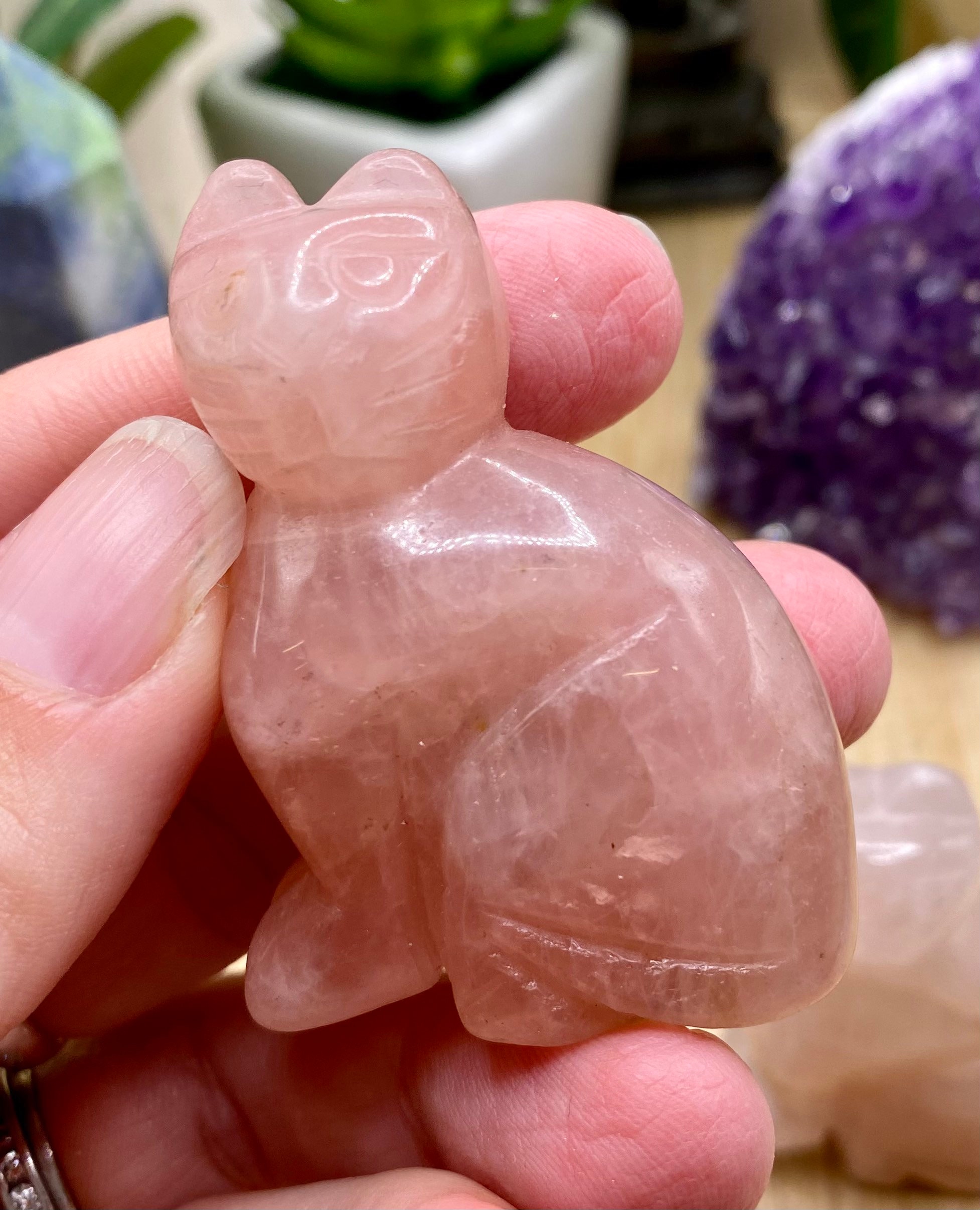These Rose Quartz cats are approximately 2 inches tall. They are so cute. You will receive a cat similar to the ones shown.