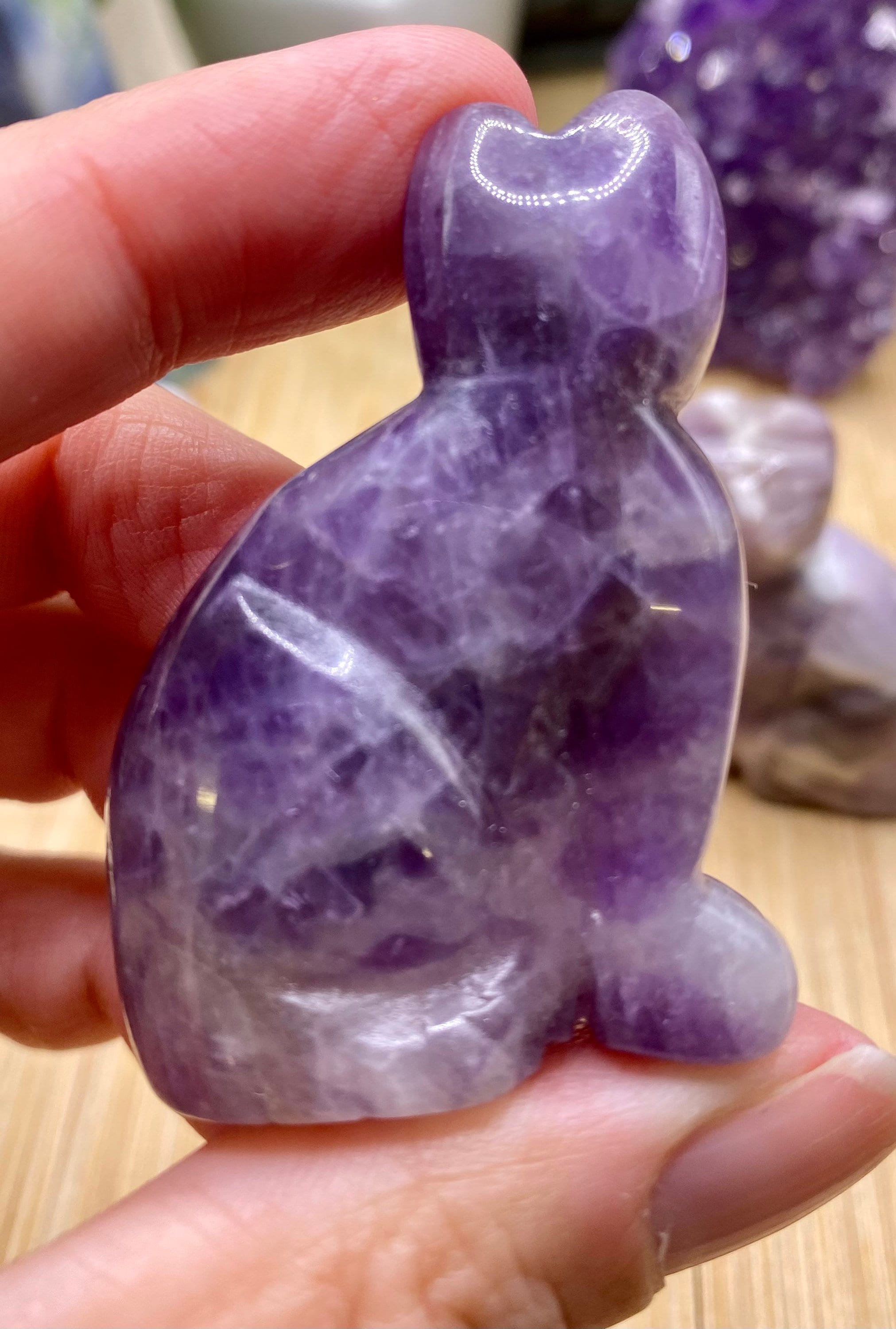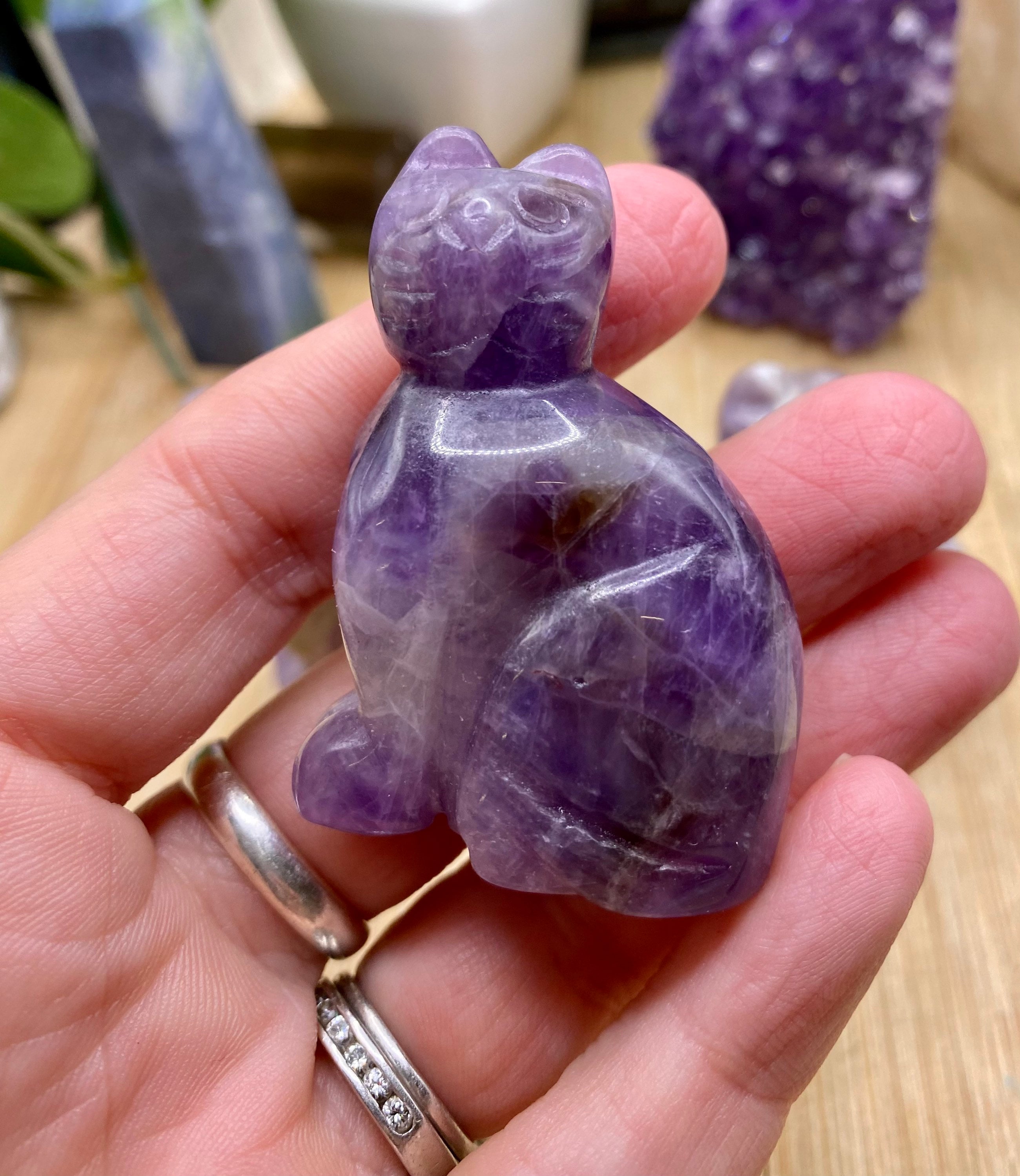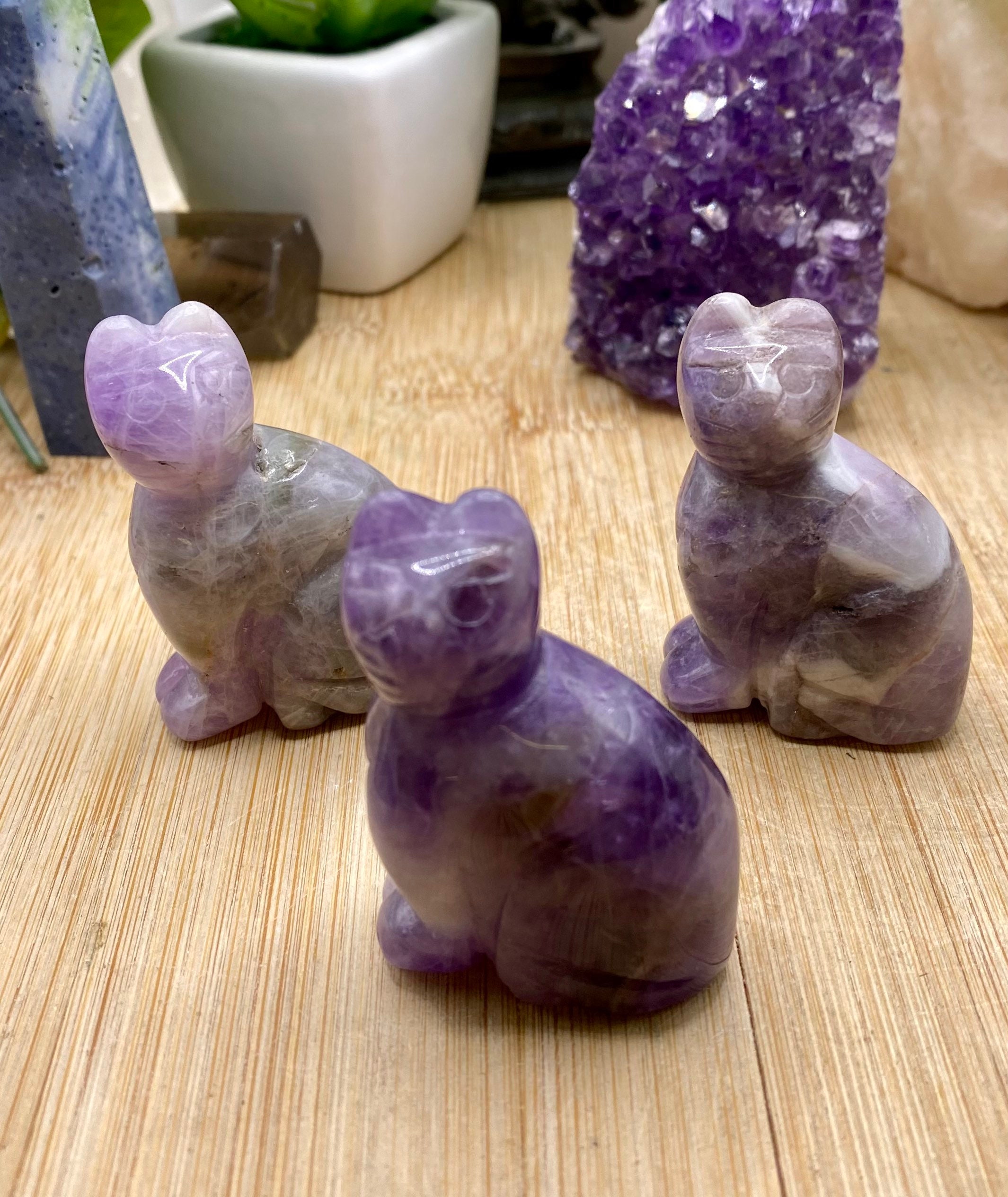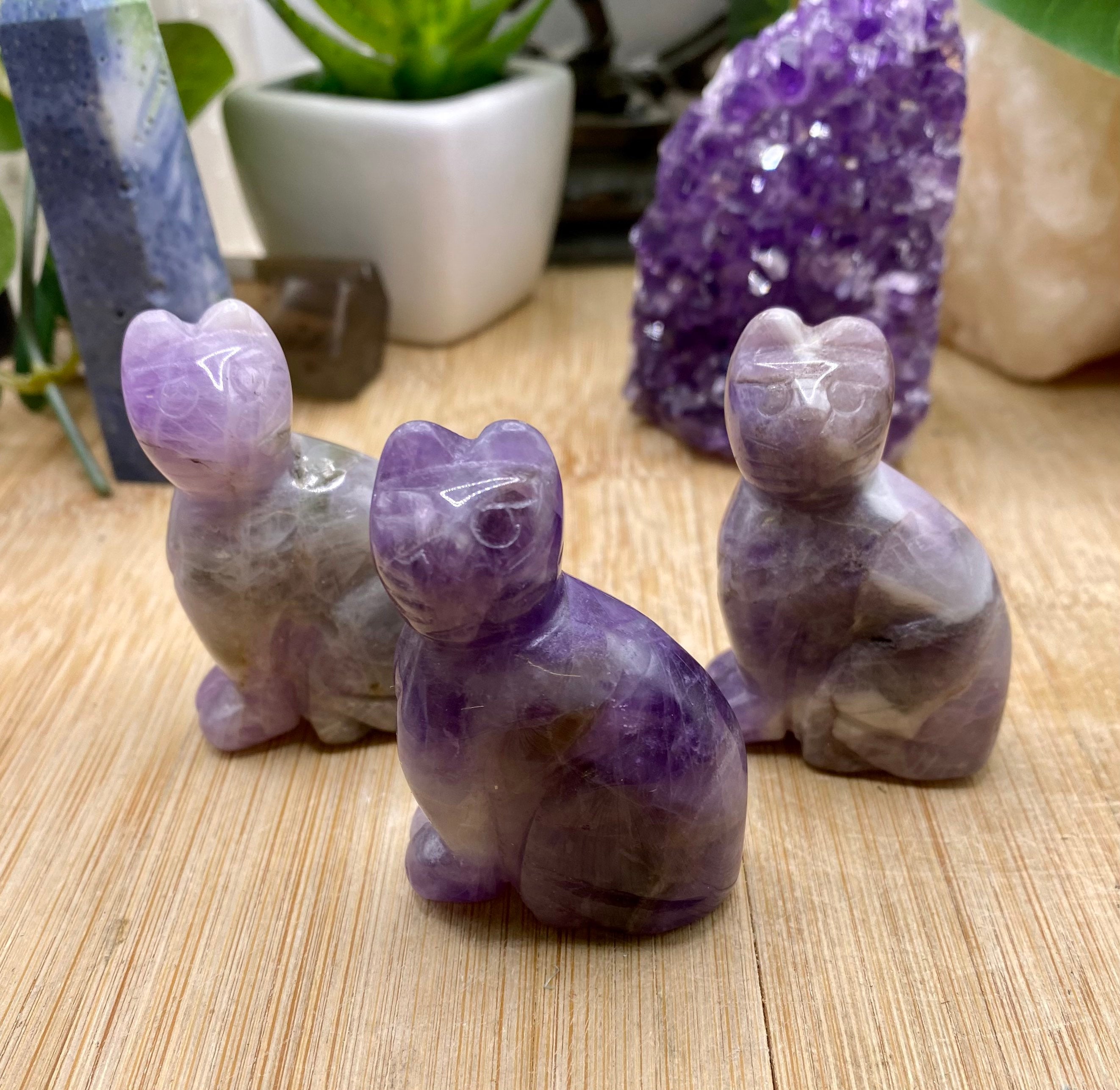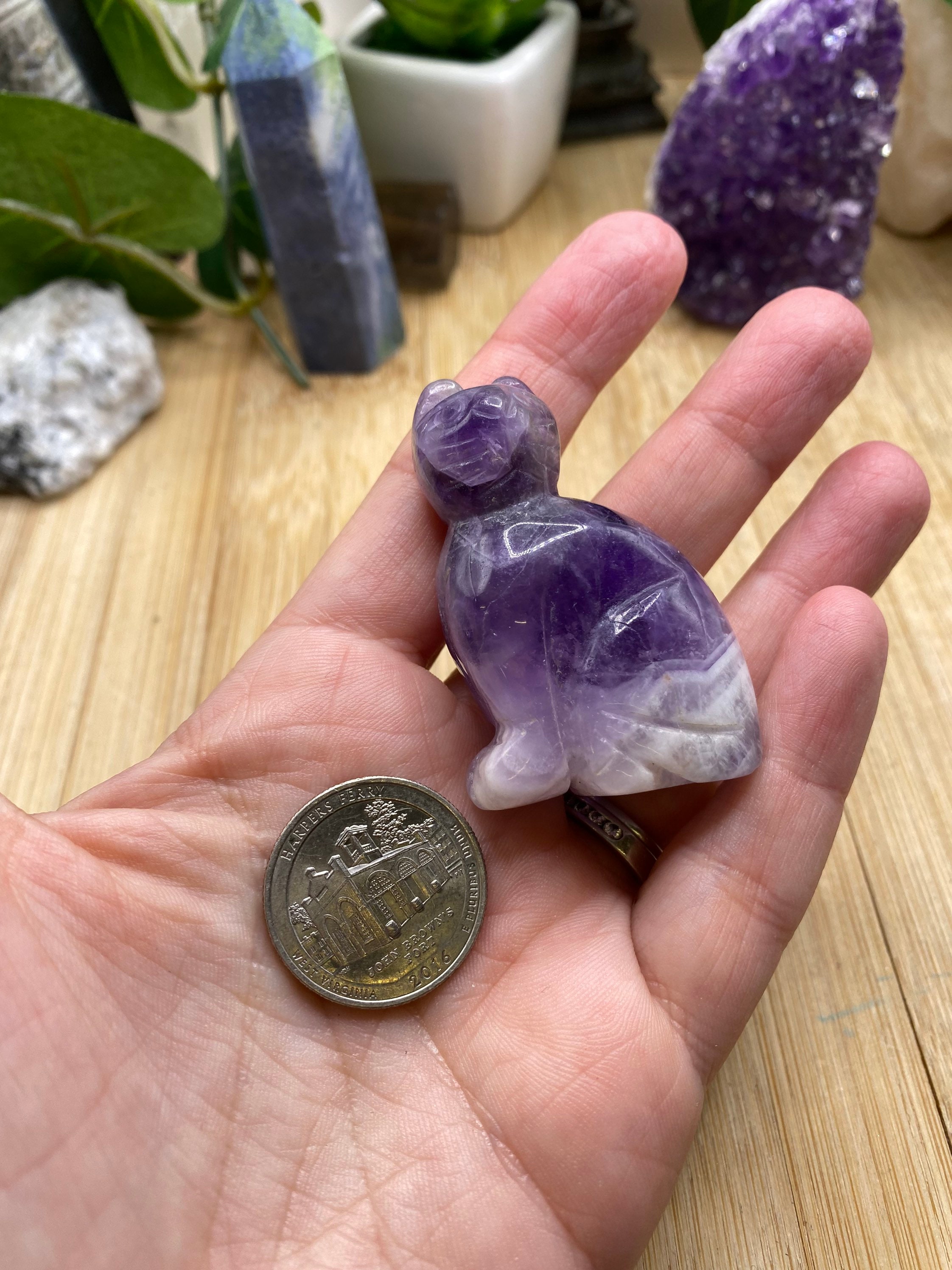 These amethyst cats are approximately 2 inches tall. They are so cute. You will receive a cat similar to the ones shown.