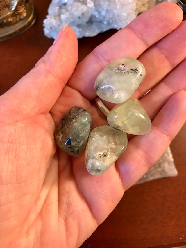Prehnite is considered a stone of unconditional love and the crystal to heal the healer. It enhances precognition and inner knowing. Enables you always to be prepared. Prehnite calms the environment and brings peace and protection