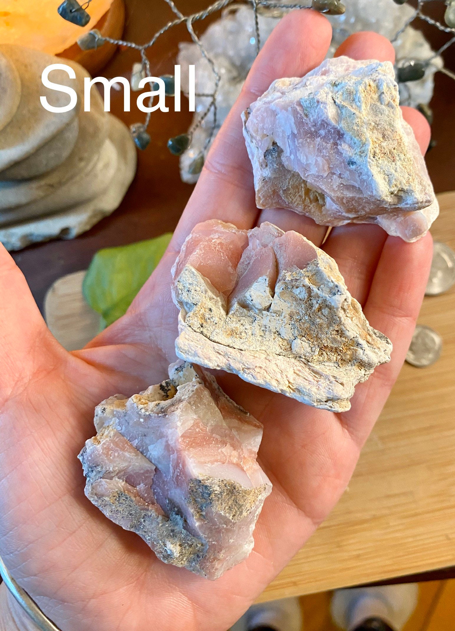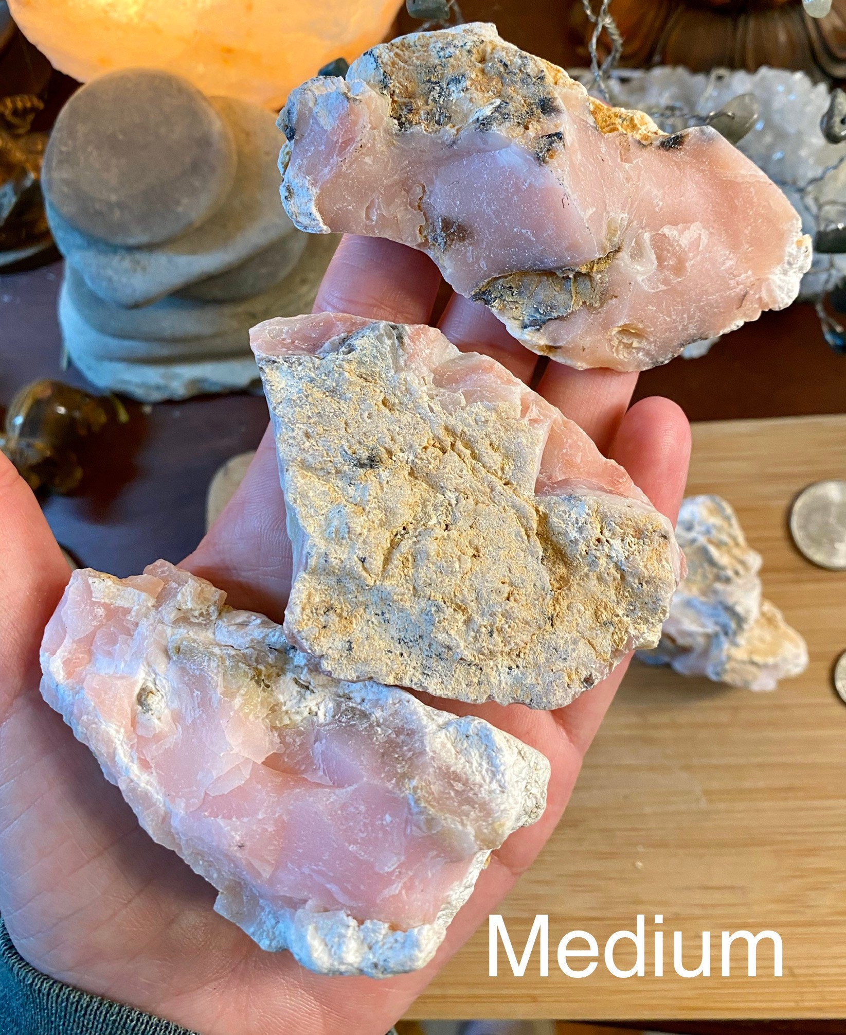 You will receive one beautiful pink opal. These natural stones are so cool to look at. You will receive a crystal similar to the ones shown. These natural stones come in 3 sizes.