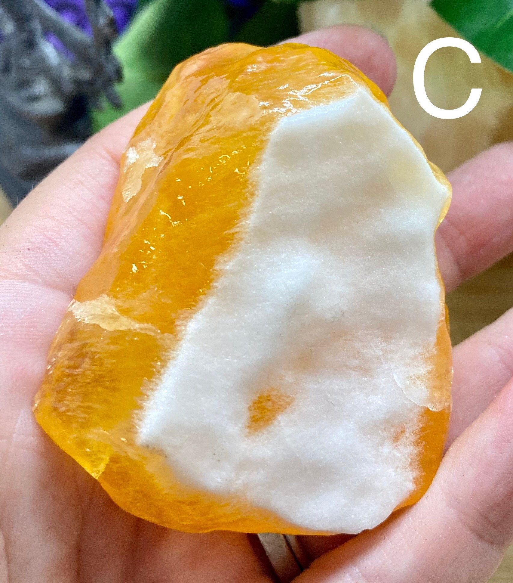 This premium orange calcite is absolutely gorgeous. You almost want to eat it! You will receive the crystal you choose. These crystals are approximately 2.5 by 2 inches in size.