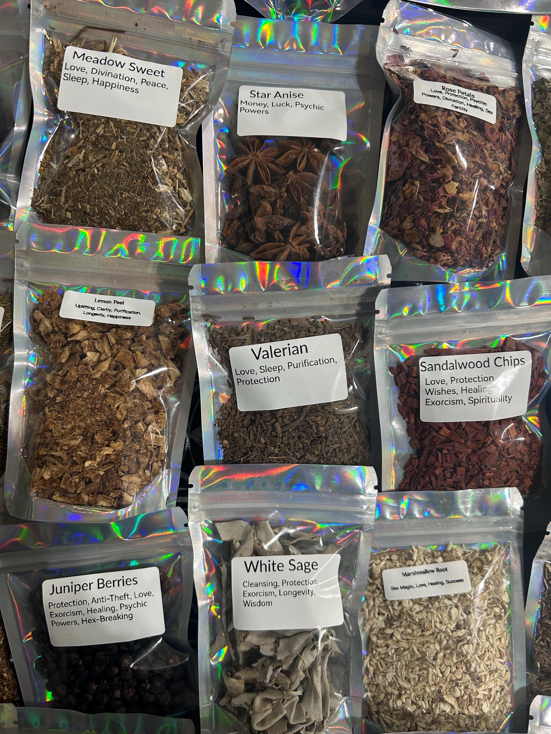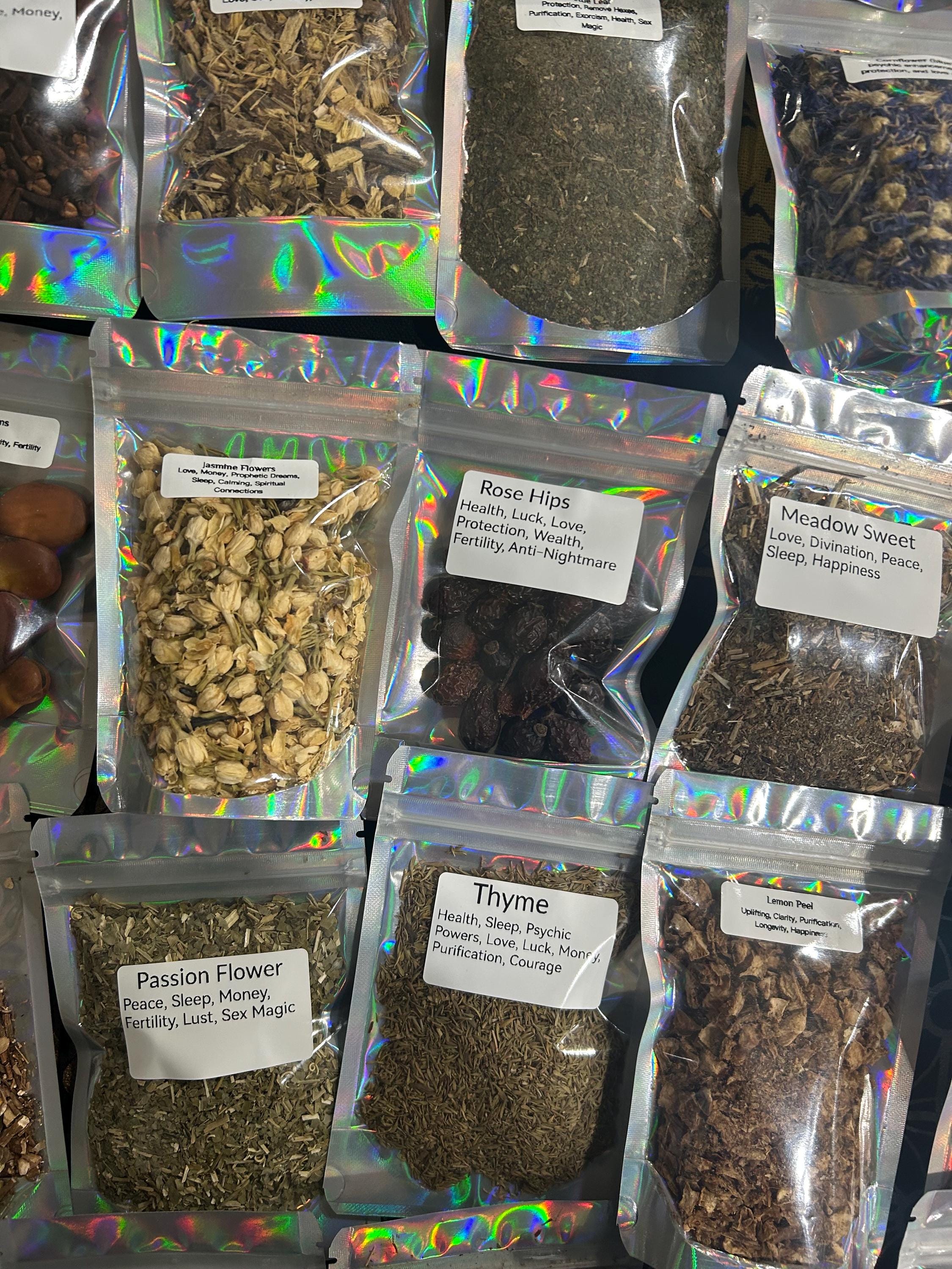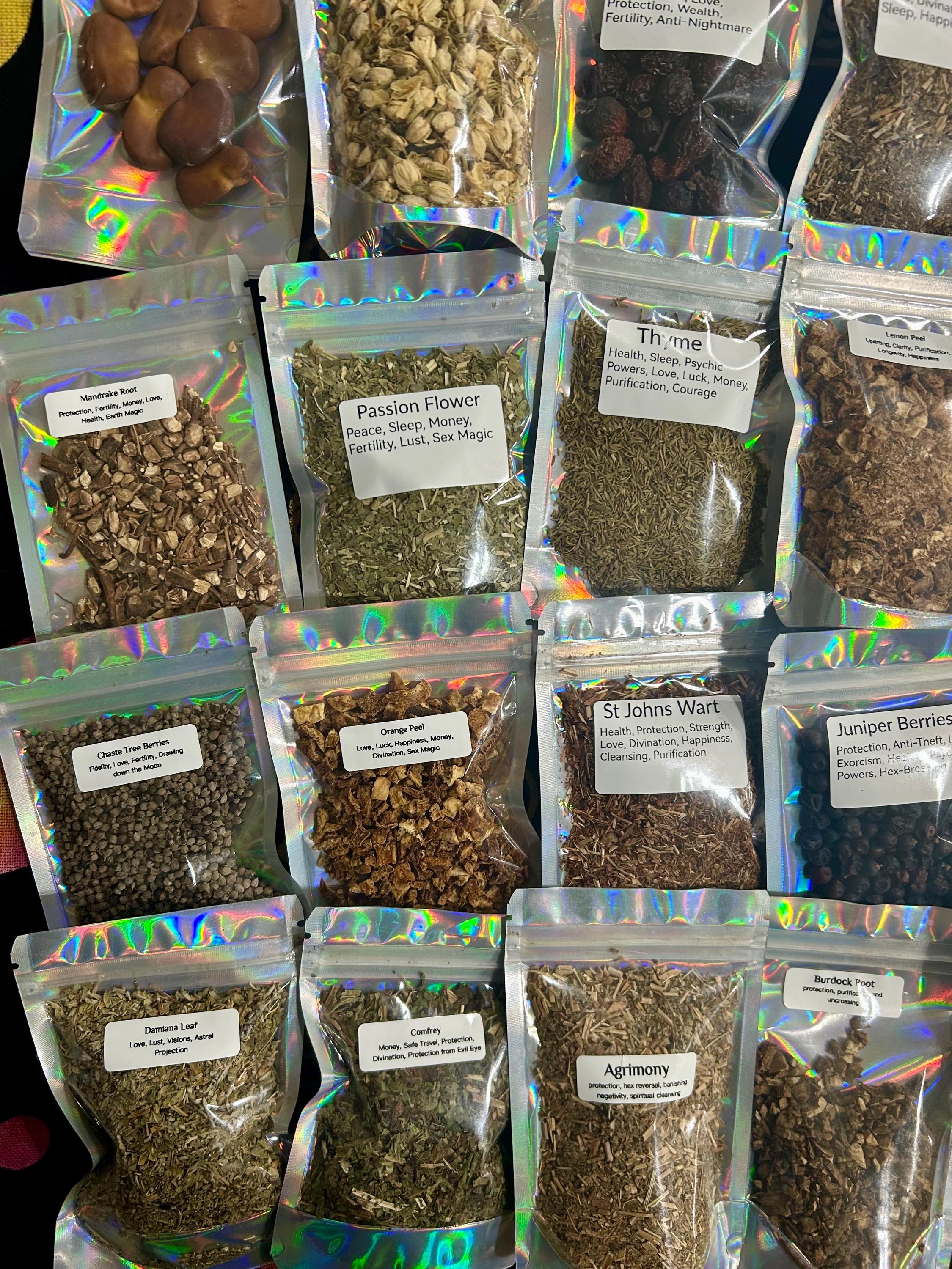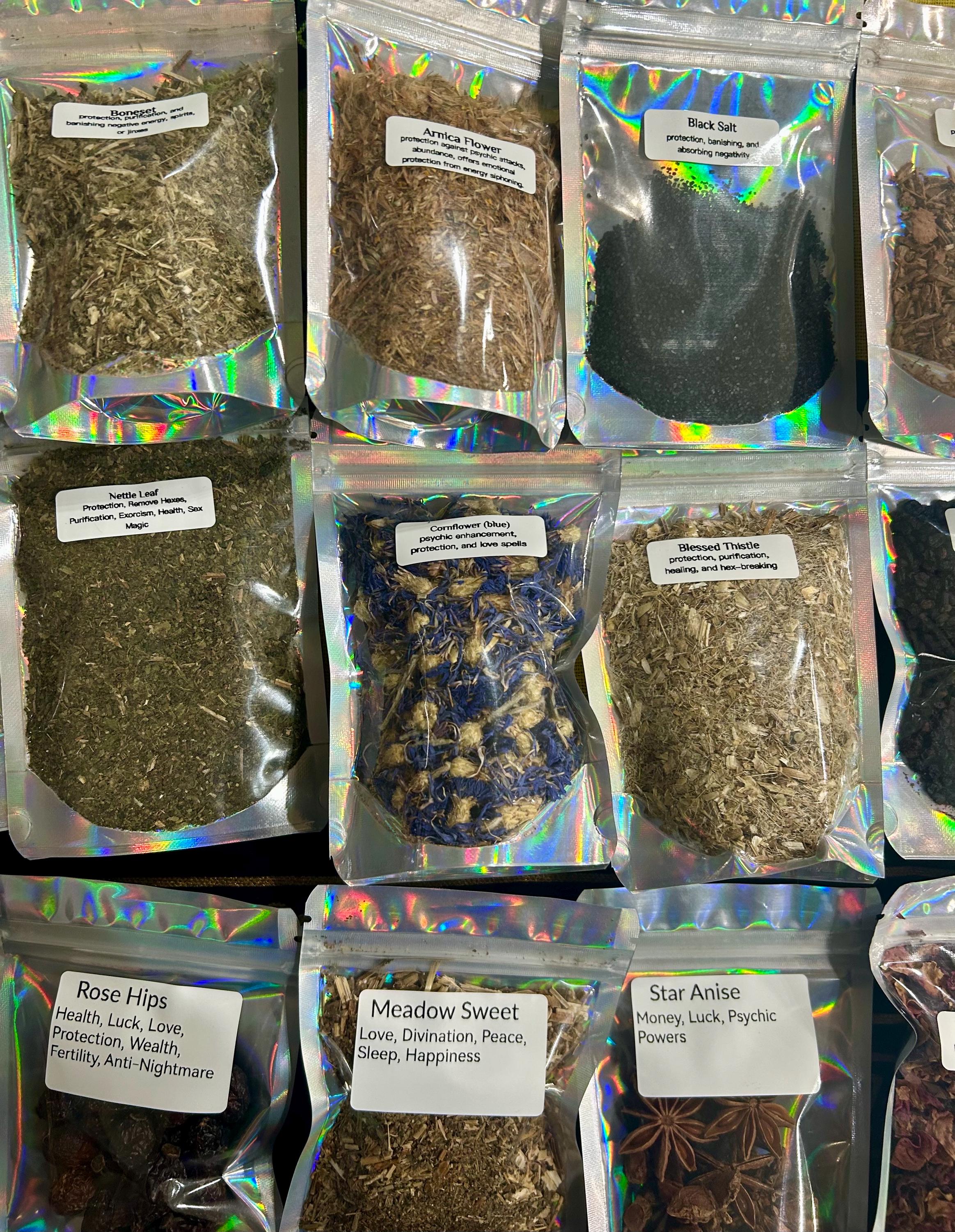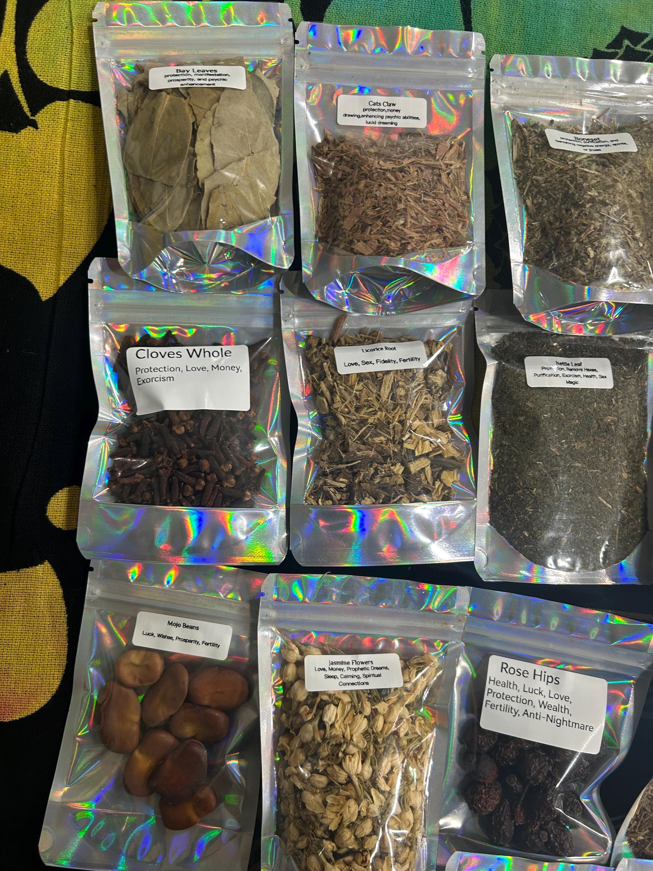 This is the perfect kit for anyone looking to get into witchcraft or apothecary!! Each herb bag is weighed and is atleast 1/2 ounce. Some bags are more , never less.