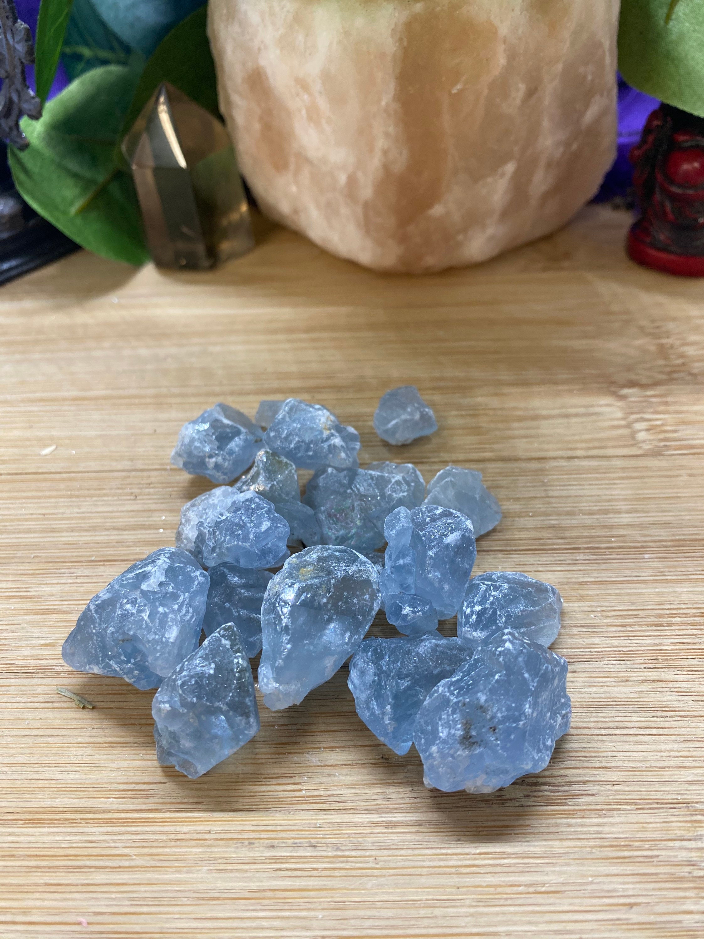 These Celestite stones would be great in a crystal grid or on an altar. They would also be great for a decorative filling, for jewelry and for use in rituals or travel altars.