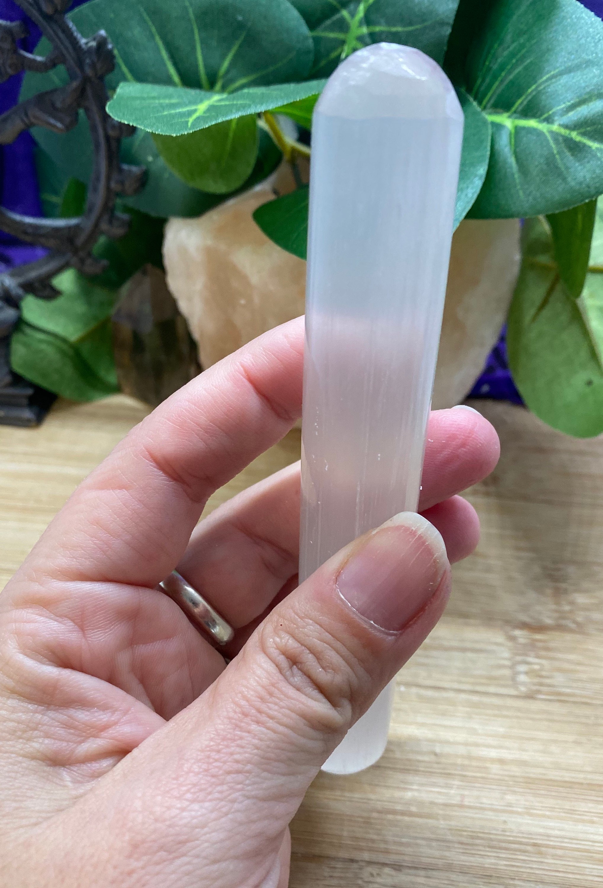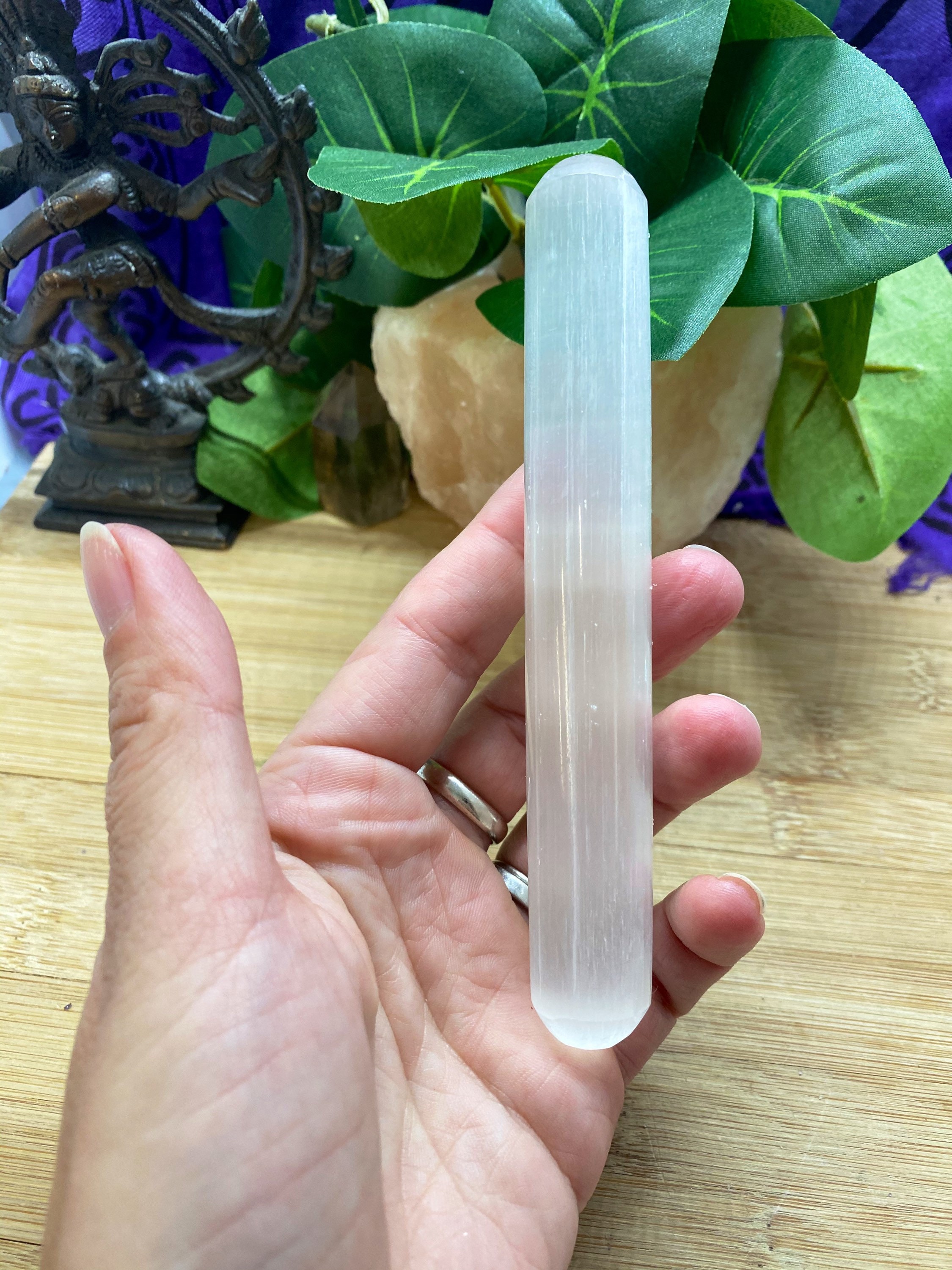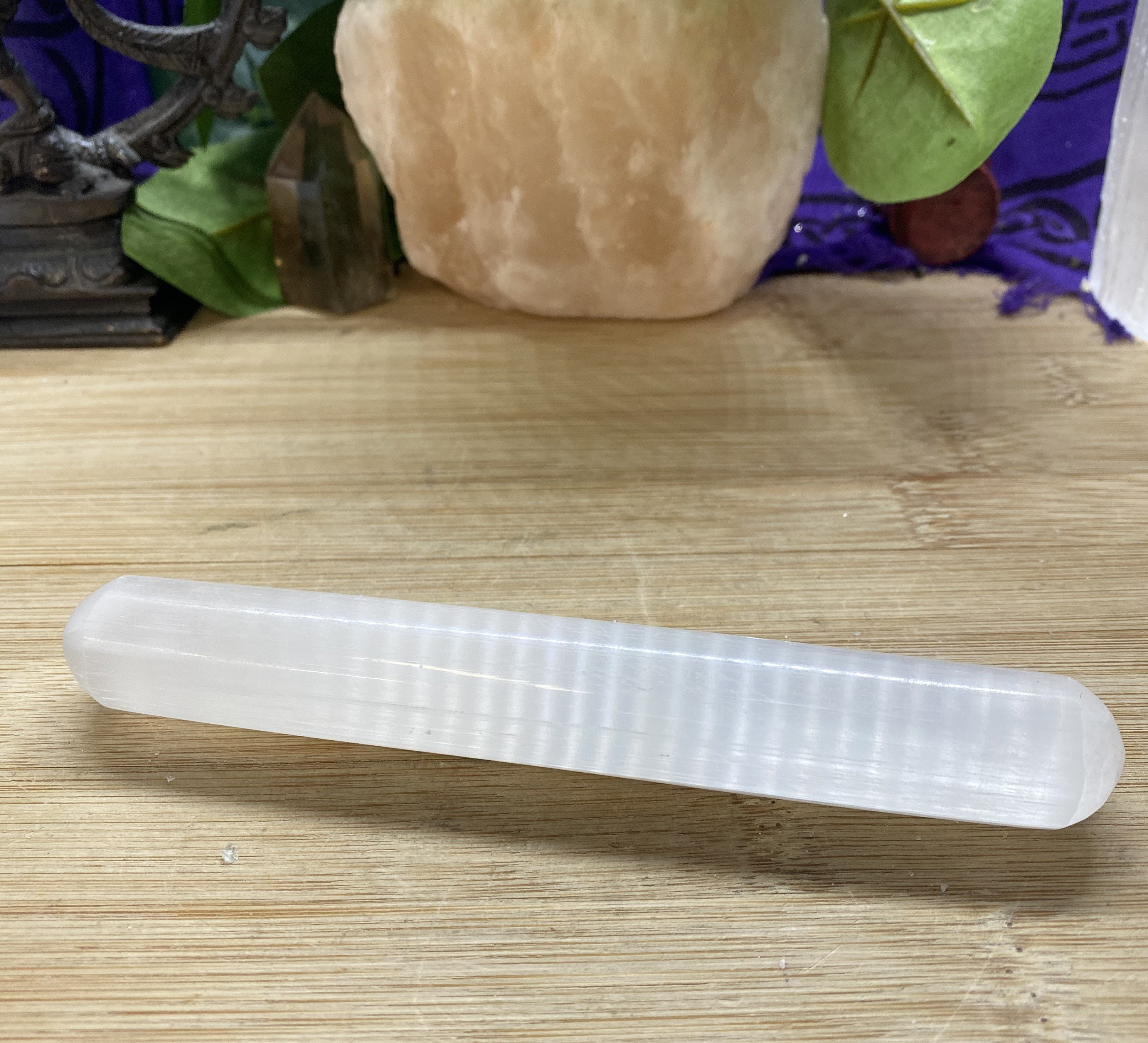 These absolutely gorgeous Selenite massage wands have a beautiful pale white color. They are polished. They are approximately 6-6.5 inches in length. These selenite wands radiate peace and calm. They are amazing for laying out crystal grids!