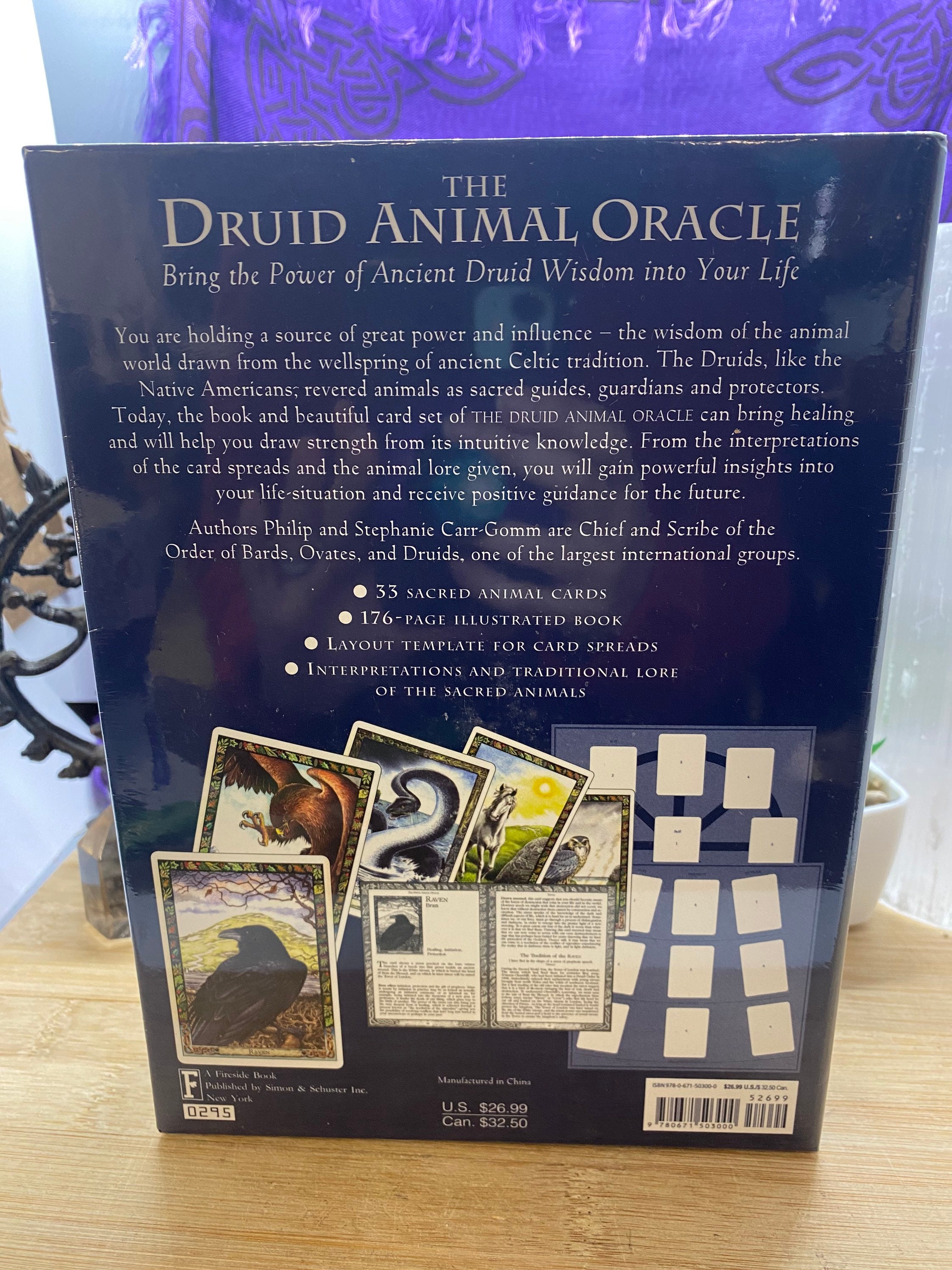 You are holding a source of great power and influence the wisdom of the animal world drawn from the wellspring of ancient Celtic tradition. The Druids, like the Native Americans, revered animals as sacred guides, guardians and protectors. Today, the book and beautiful card set of The Druid Animal Oracle can bring healing and will help you draw strength from its intuitive knowledge. From the interpretations of the card spreads and the animal lore given, you will gain powerful insights into your life-situation and receive positive guidance for the future. Authors Philip and Stephanie Carr-Gomm, who live in England, are Chief and Scribe of the Order of Bards, Ovates, and Druids, one of the largest international Druid groups. Includes 33 cards and a 176 page guidebook.