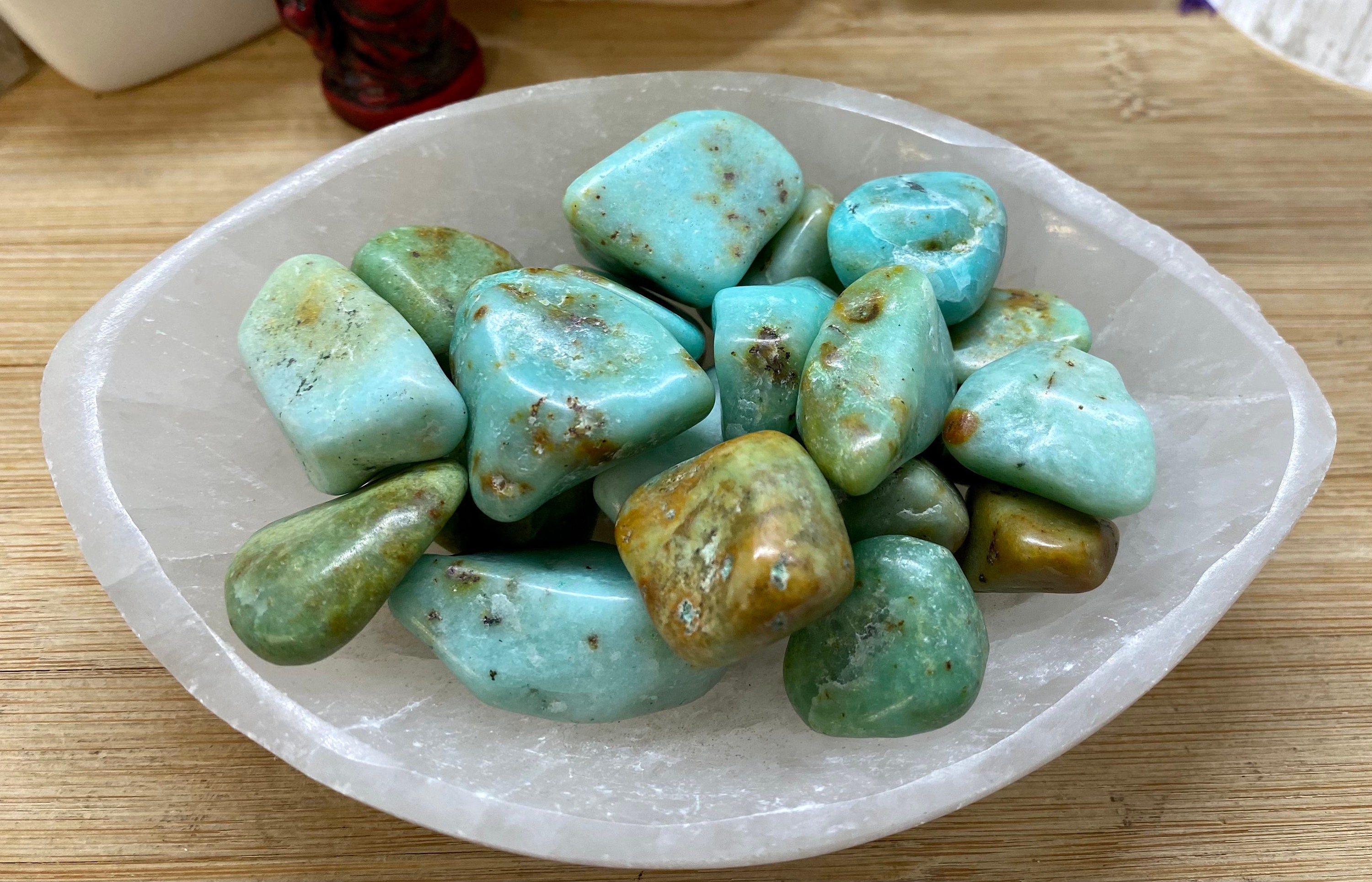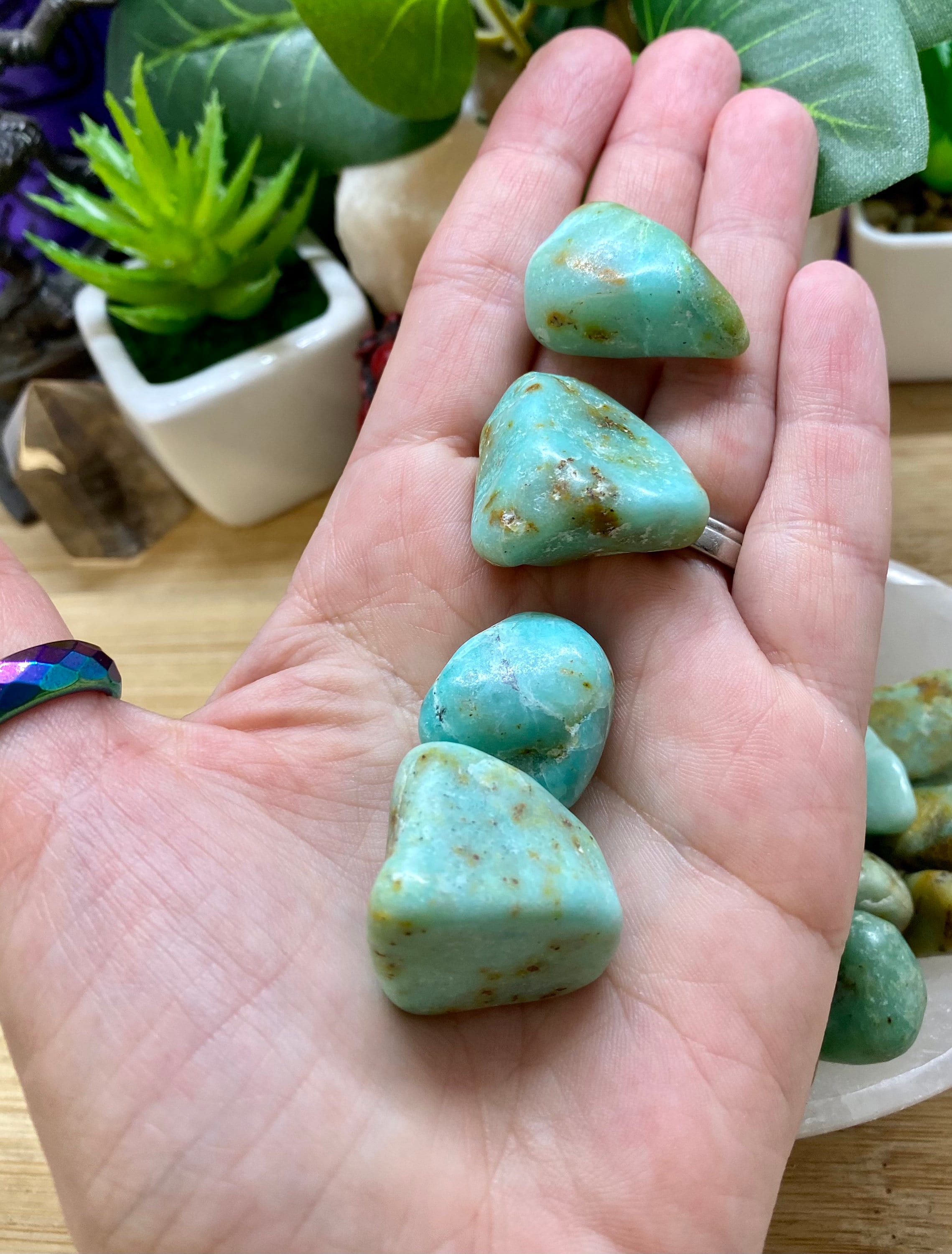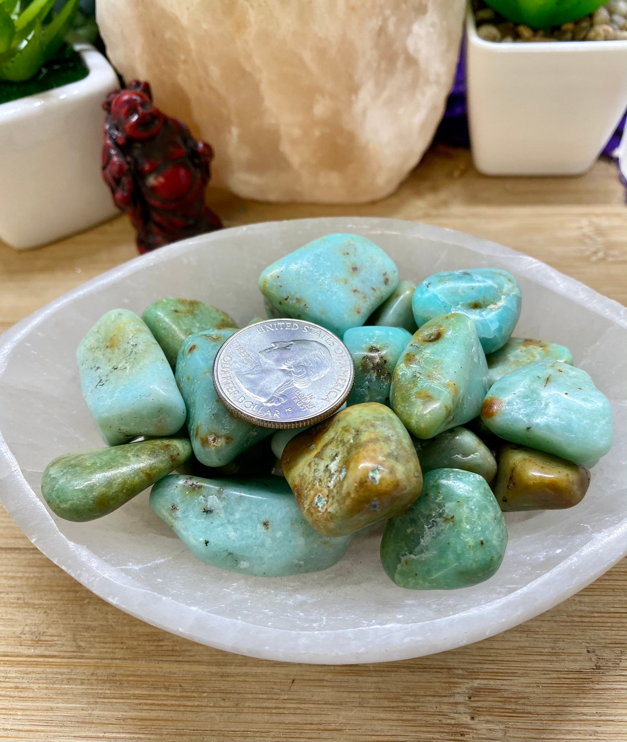 You get one Chrysoprase tumbled stones similar to the ones pictured. The stone(s) you get are one half to one inch plus in size.